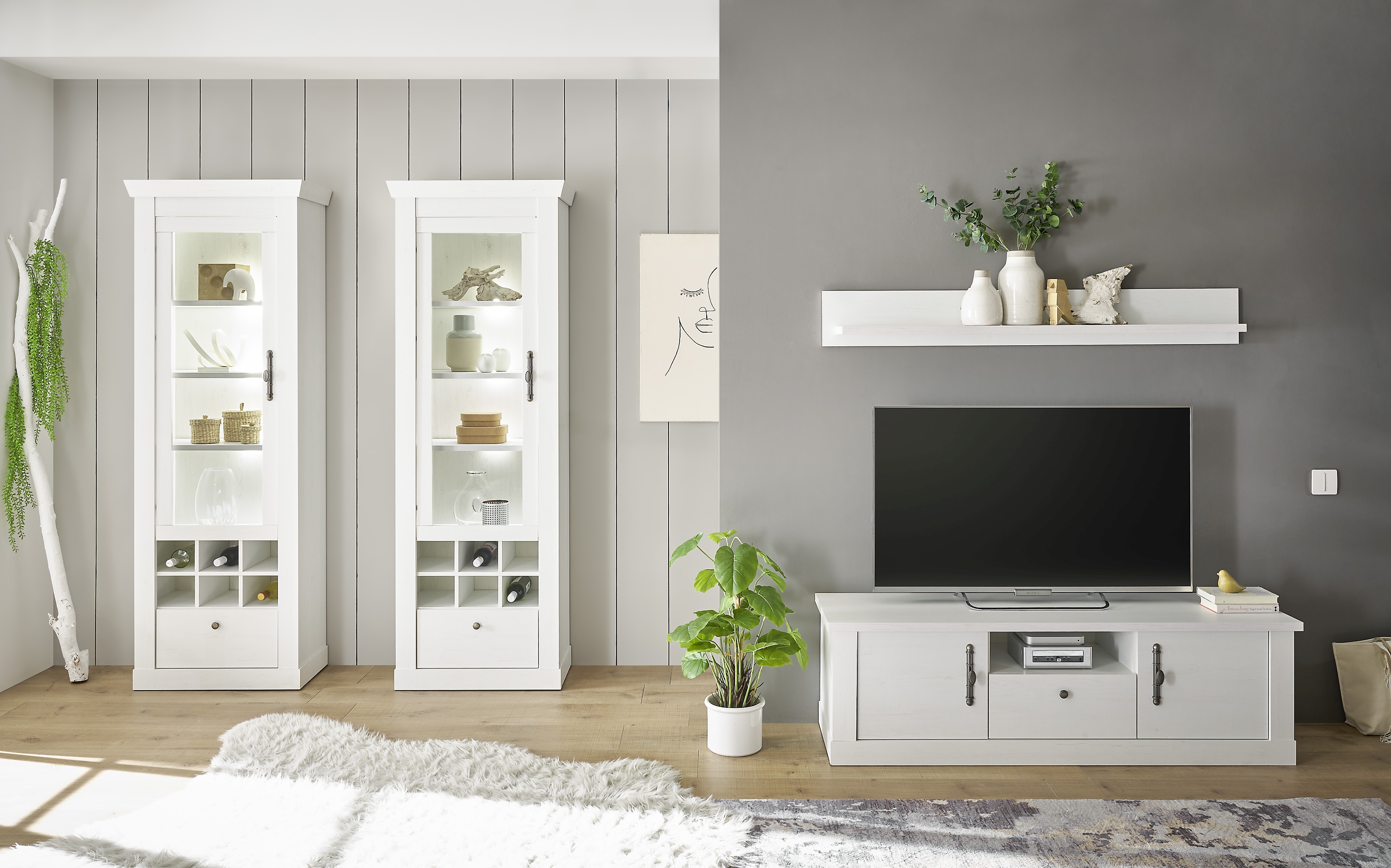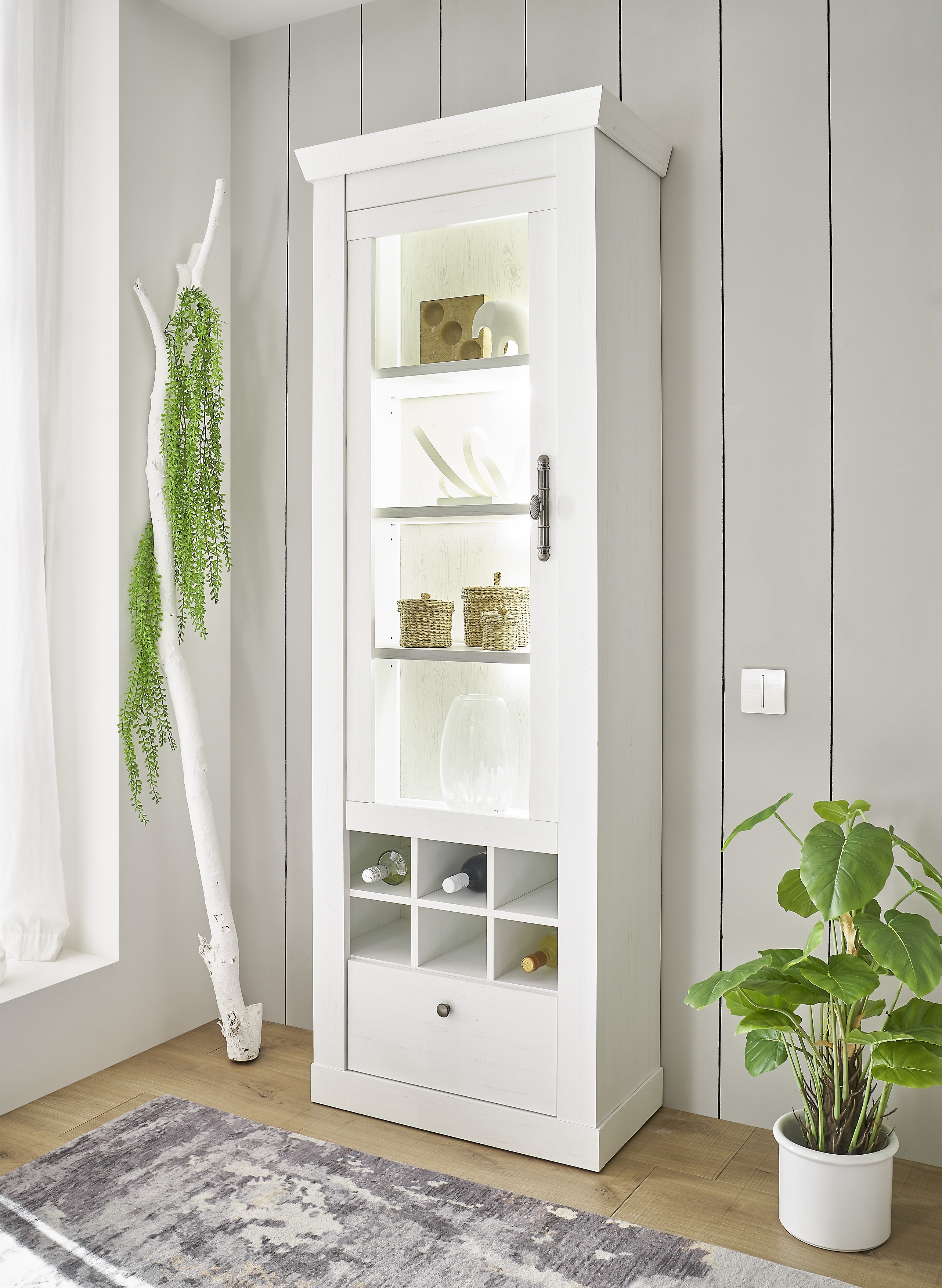 Façade : décor pin blanc / verre