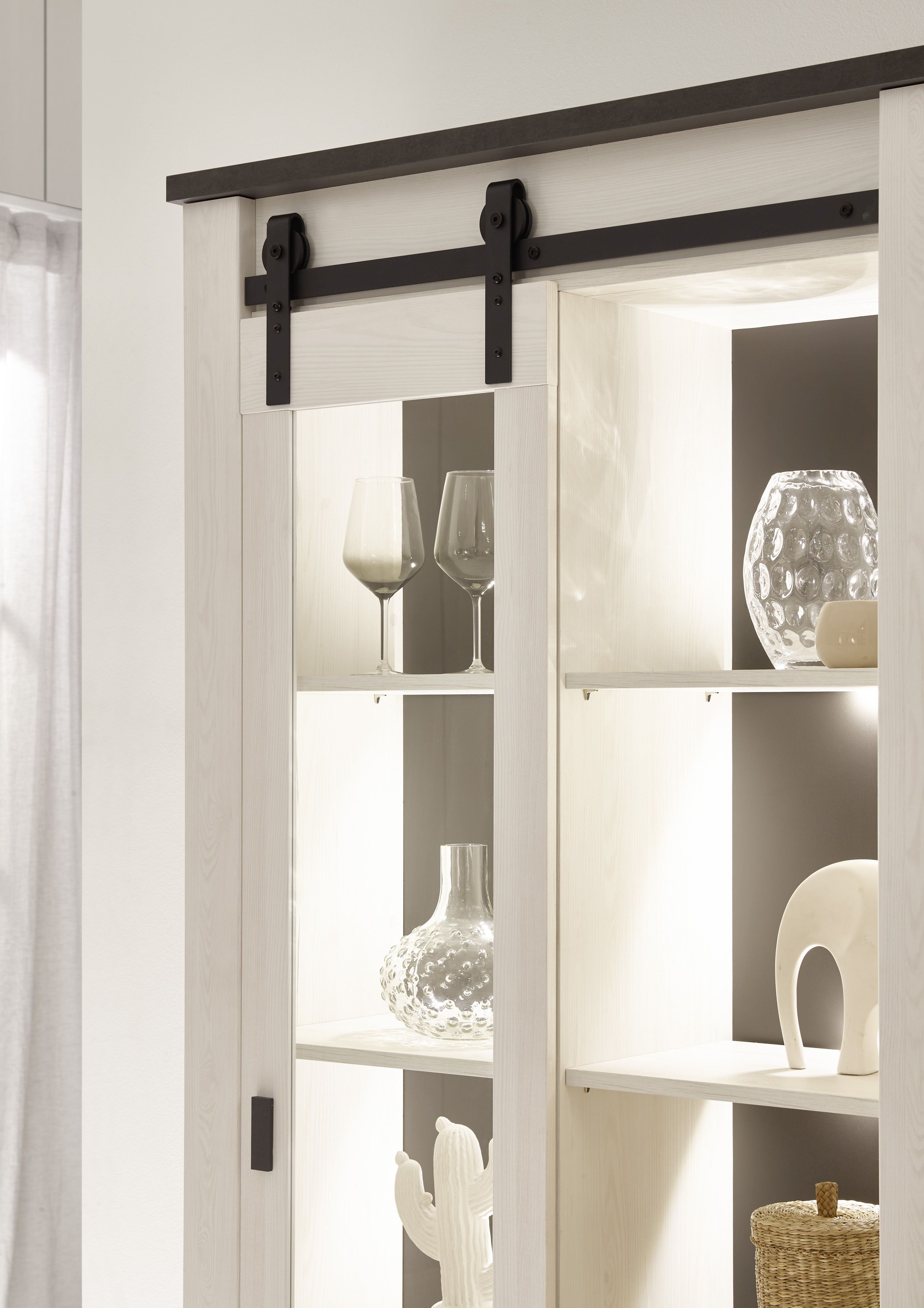 Façade : décor pin blanc / verre