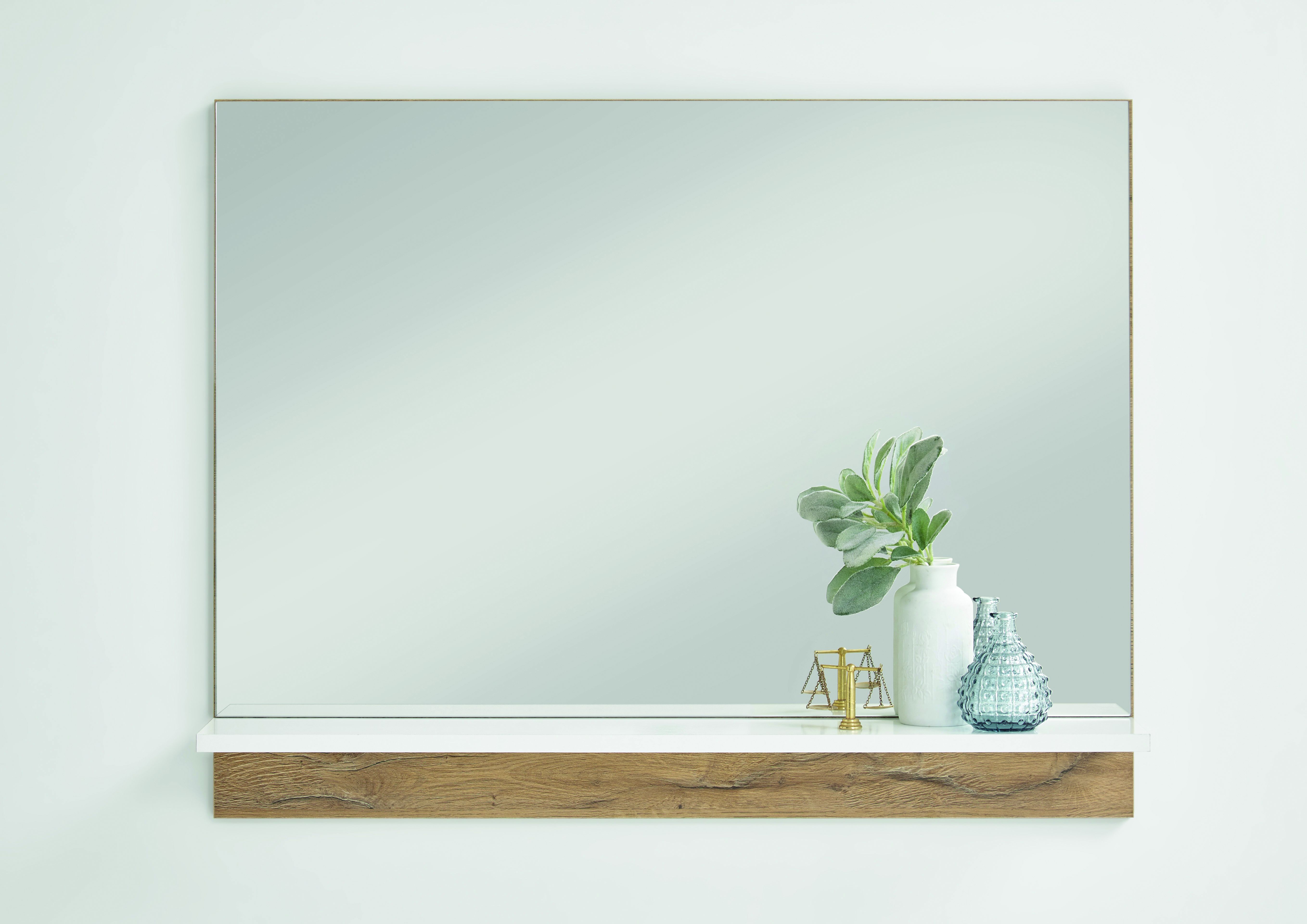 Caisson et façade : décor bois ton vieux chêne et blanc brillant raffiné / miroir