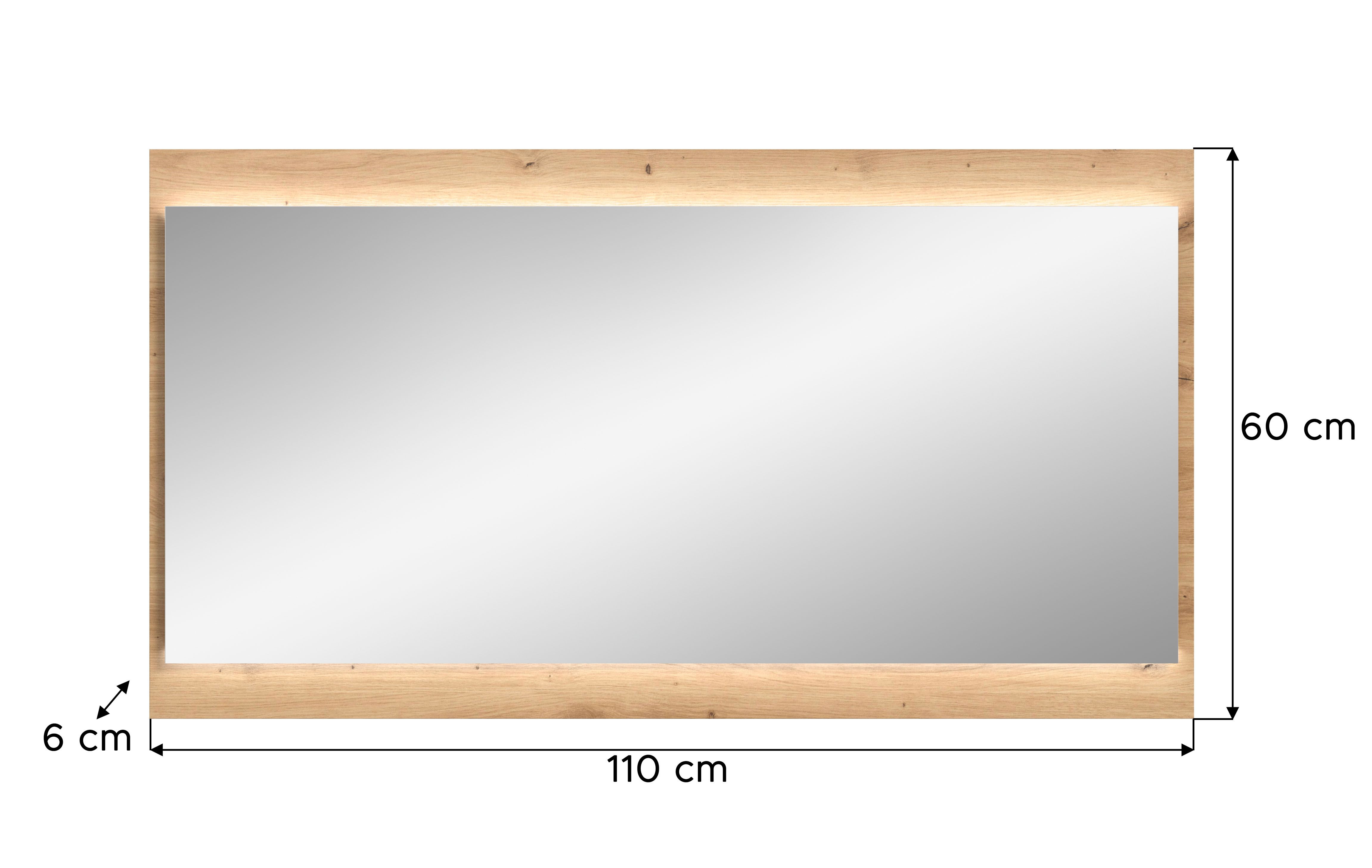 Le miroir décor chêne Artisan avec bandeau LED (dimensions L/H : 110 x 60 cm) apportera à la fois lumière et style à votre intérieur. Le bois composite certifié FSC® est synonyme de durabilité. Sa surface facile d’entretien et son montage rapide rendent ce miroir particulièrement pratique au quotidien. Il peut être combiné avec d’autres articles de la série pour aménager votre intérieur avec flexibilité. Le modèle idéal pour conférer à votre pièce encore plus de clarté et de modernité.