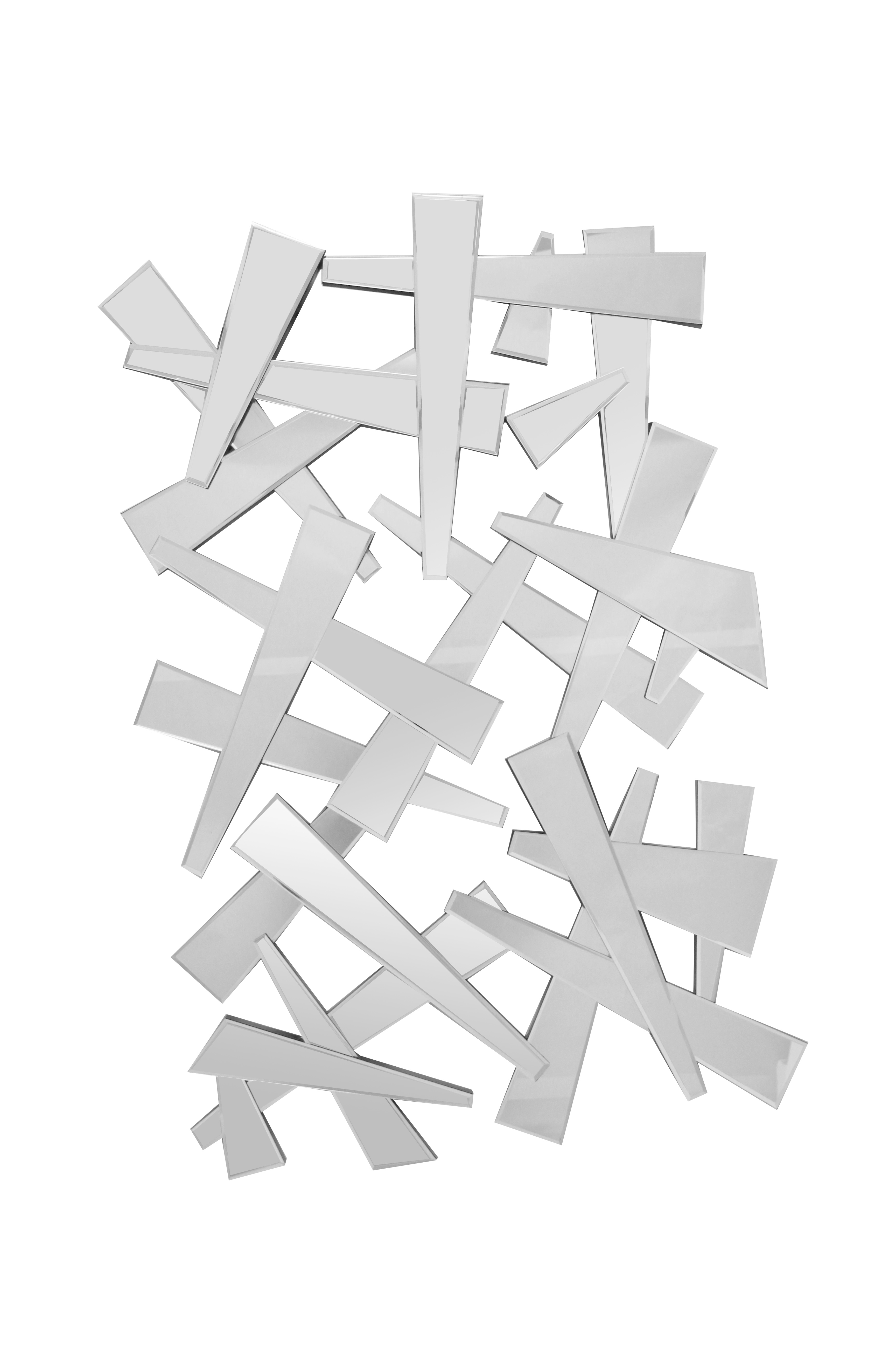 Ce miroir moderne confère une touche décorative à n'importe quelle pièce grâce aux éléments au look abstrait en forme d'éclats de verre de différentes tailles. Vous pouvez accrocher le miroir où vous voulez dans votre maison : dans l'entrée, la salle de bain, la chambre à coucher ou le salon, ou même au-dessus d'une coiffeuse. Quel que soit l'endroit où il sera placé, ce miroir mural attirera le regard dans la pièce. Les petites salissures peuvent être enlevées avec un chiffon légèrement humide, voire un nettoyant pour vitres.