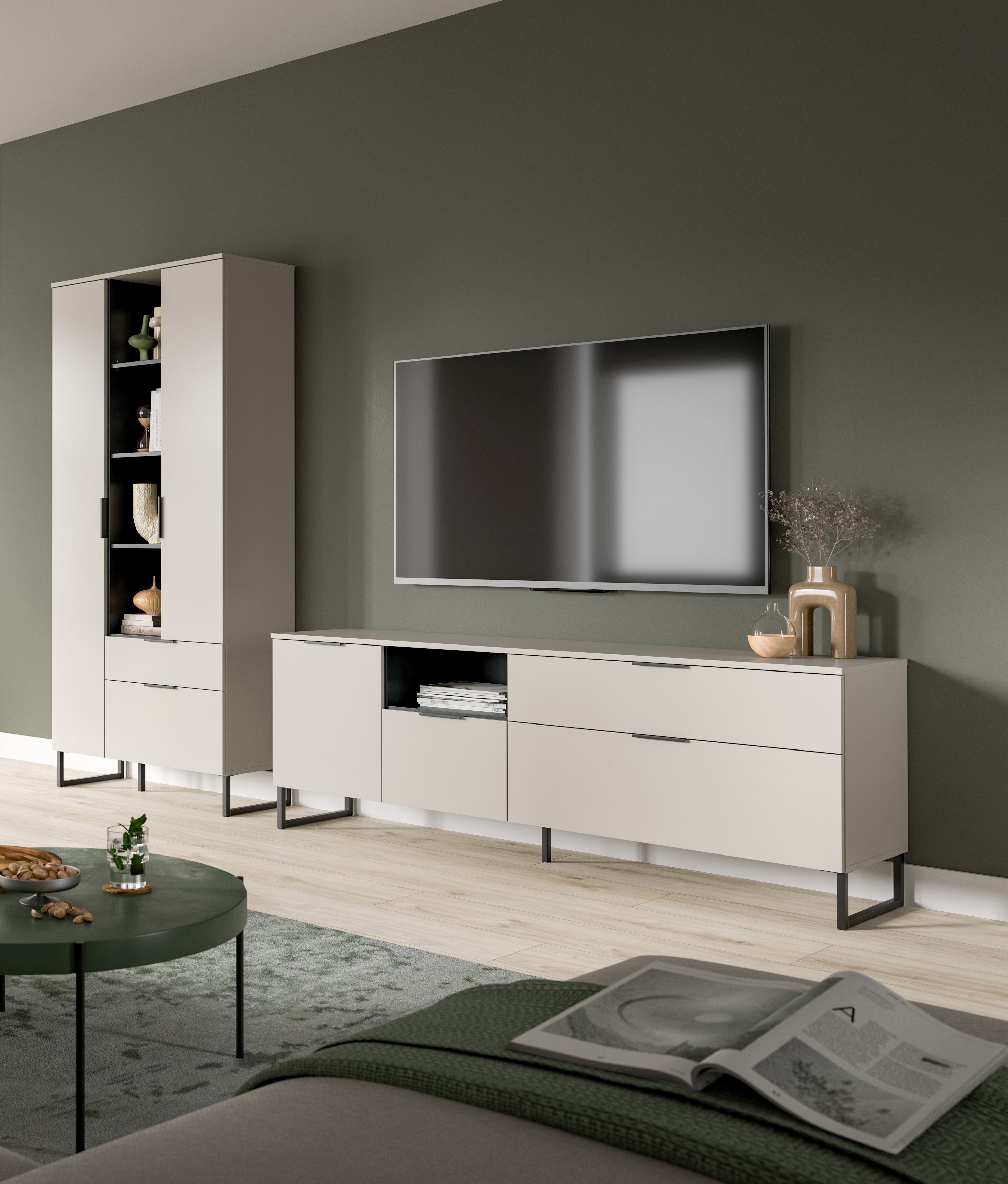 Ce mur TV 2 éléments en décor cachemire (dimensions : L/H/P : 290 x 192 x 41 cm) se compose d’une armoire de salon et d’un banc TV. Sa surface facile d’entretien dans un coloris tendance lui confère une allure élégante tout en facilitant le nettoyage. Cet ensemble de séjour offre un bel espace de rangement pour organiser vos objets du quotidien et structurer votre salon de manière ordonnée et stylée. Les meubles de qualité se distinguent par leur robustesse et leur longévité, tout en offrant de nombreuses possibilités de combinaison. Avec ce mur TV, vous créerez une alliance parfaite entre design, fonctionnalité et confort.