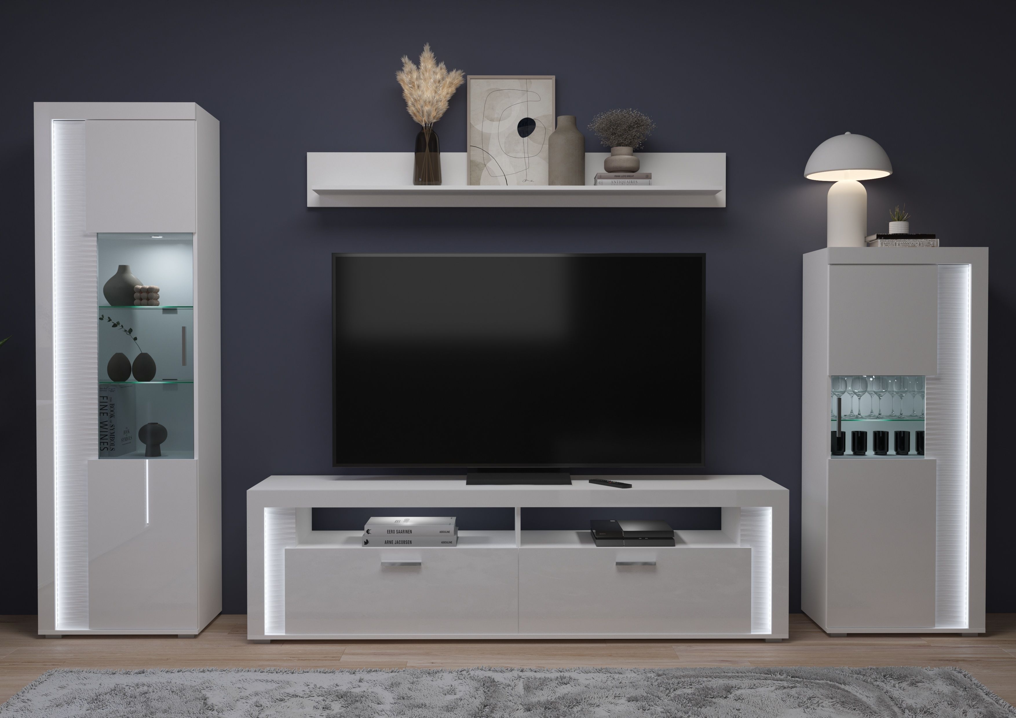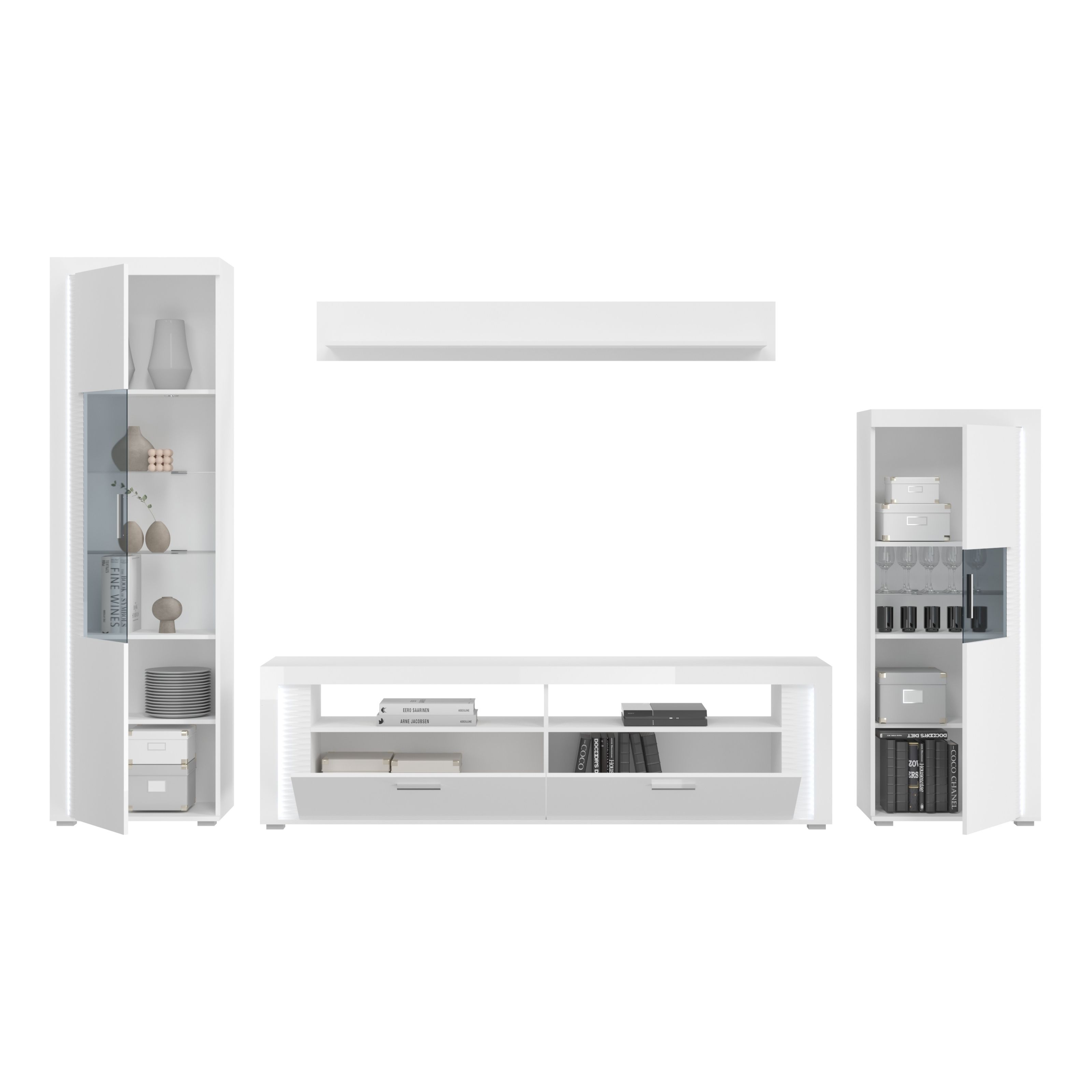 • Design/style : ce mur TV avec finition thermoformée ton blanc ultra brillant séduit par son design moderne et élégant. L’alliance des surfaces brillantes et des lignes épurées crée une esthétique contemporaine - à la fois sobre et attrayante - dans le salon, la salle à manger ou l’entrée .