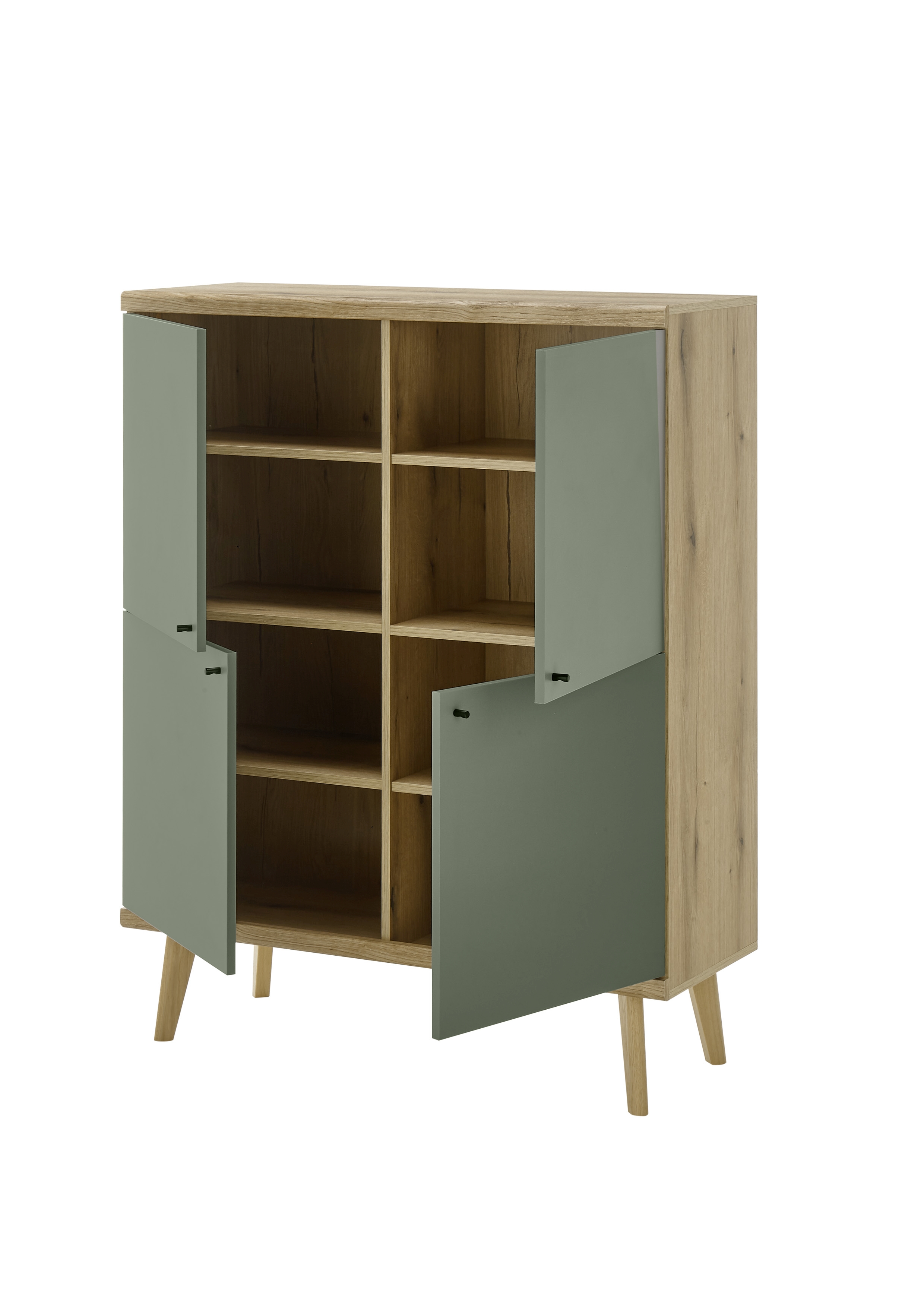 1 bahut haut vitrine avec 4 portes, 2 tablettes fixes et 4 tablettes amovibles