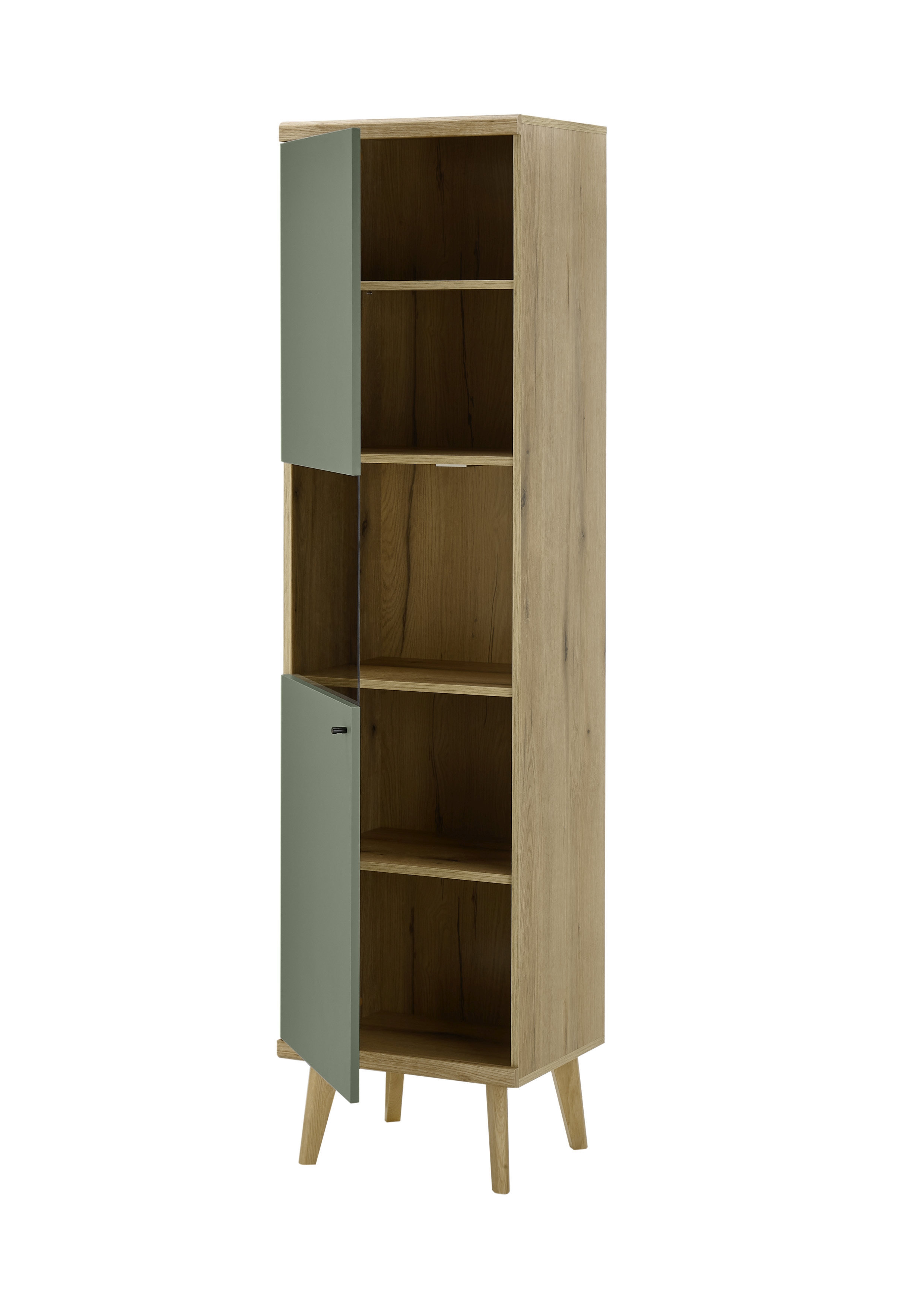 1 bahut haut avec 4 portes, 4 tablettes amovibles et 2 tablettes fixes