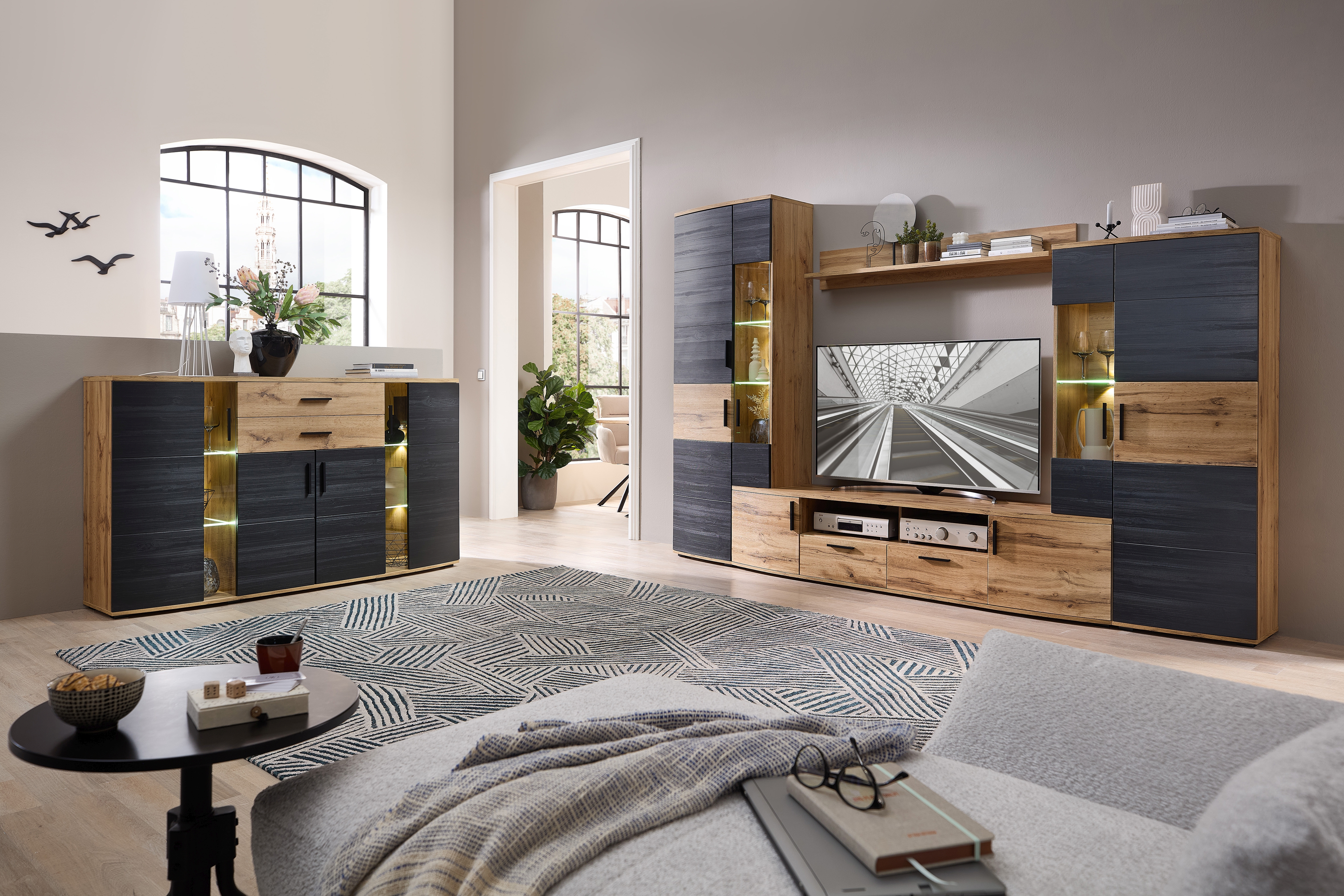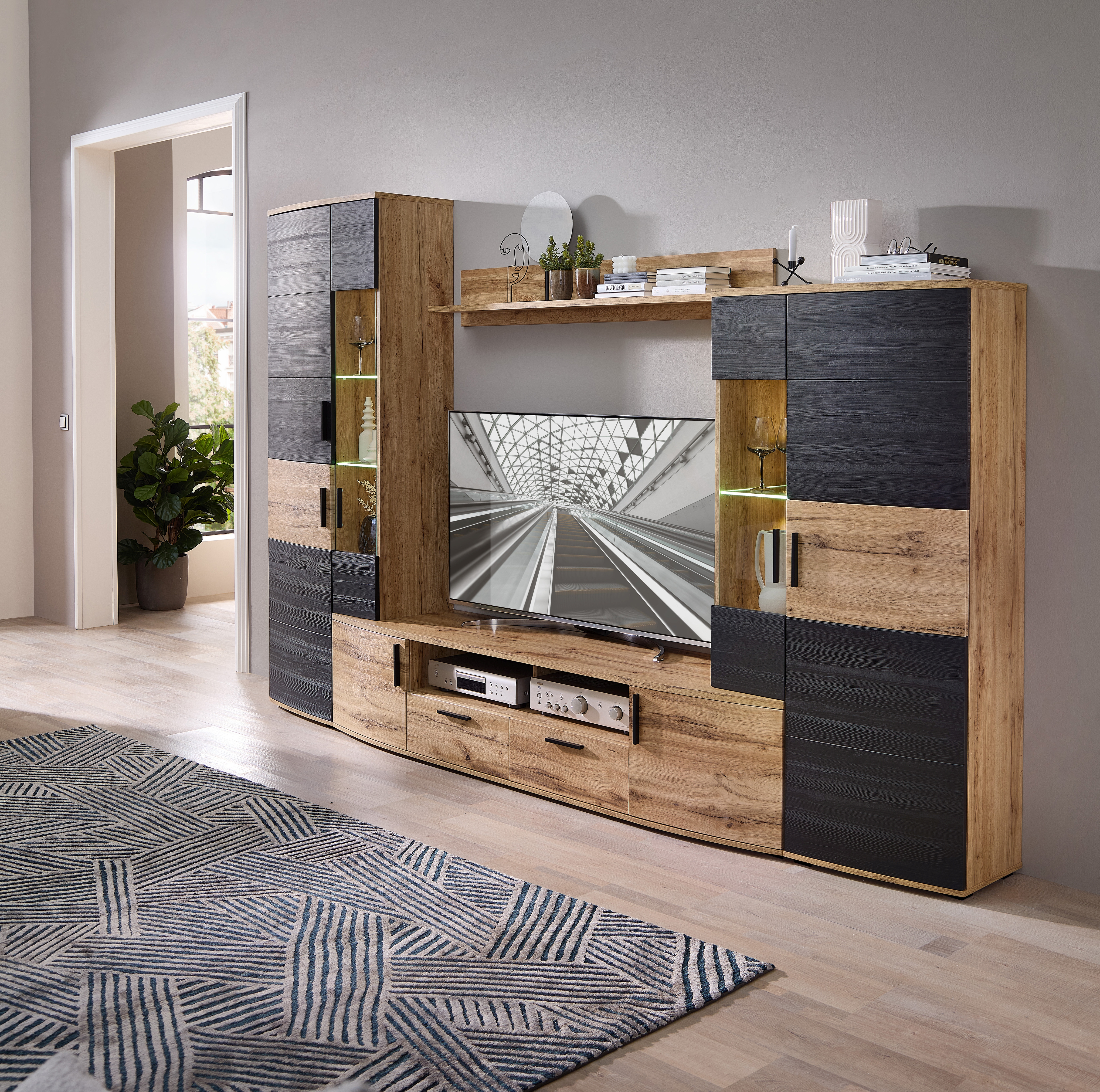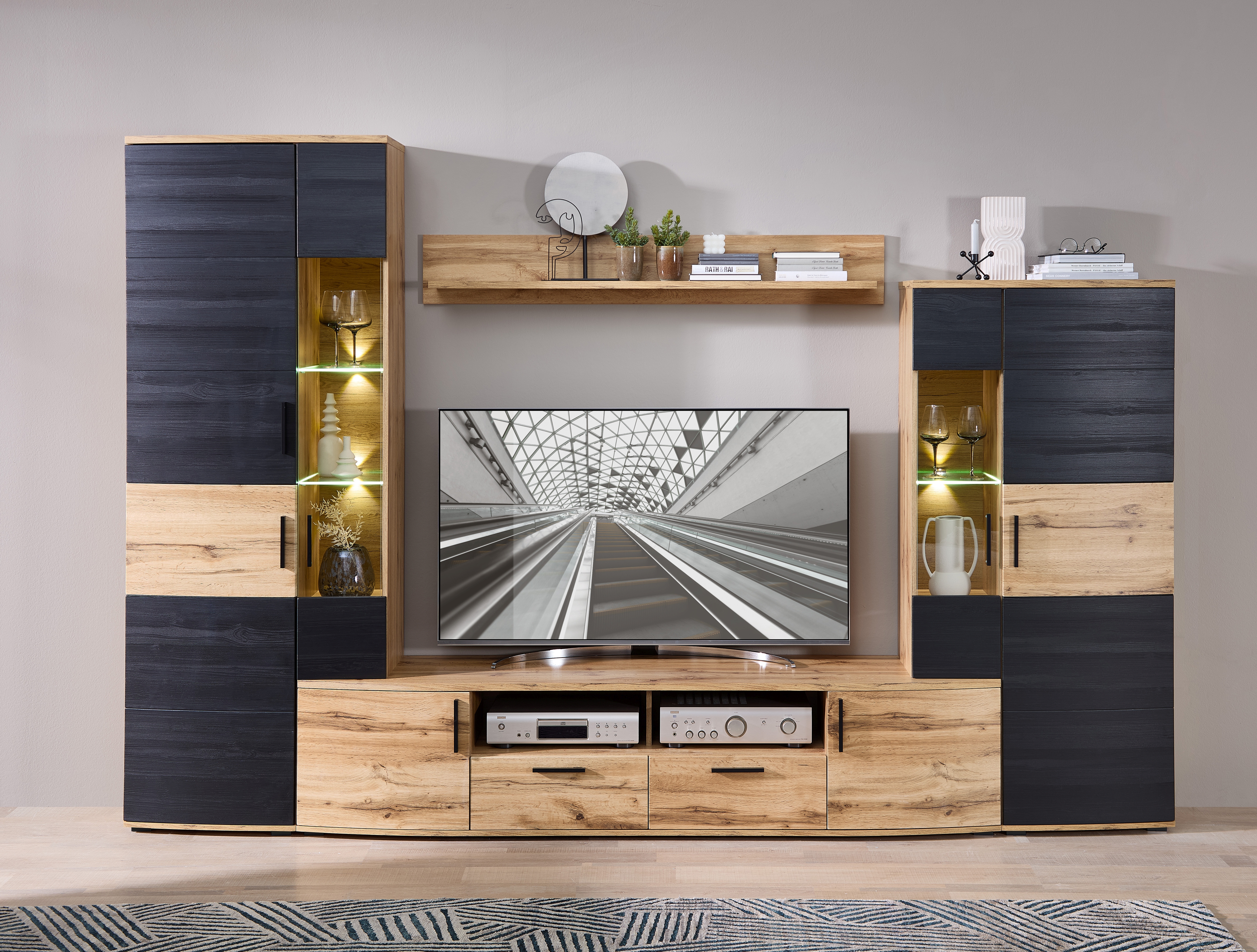 | Equipement murs TV: | Casiers ouverts, Tiroirs, incl. éclairage | ||