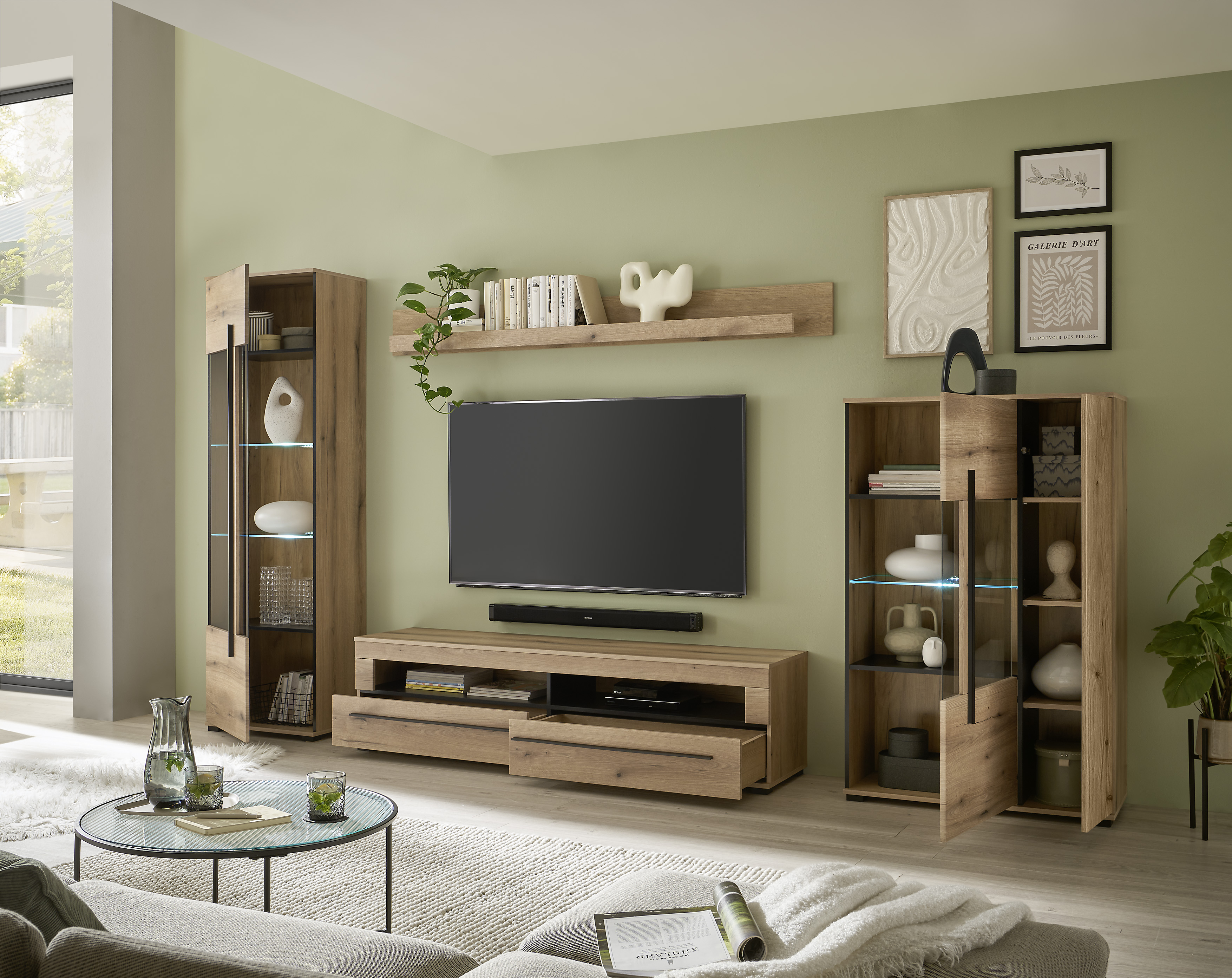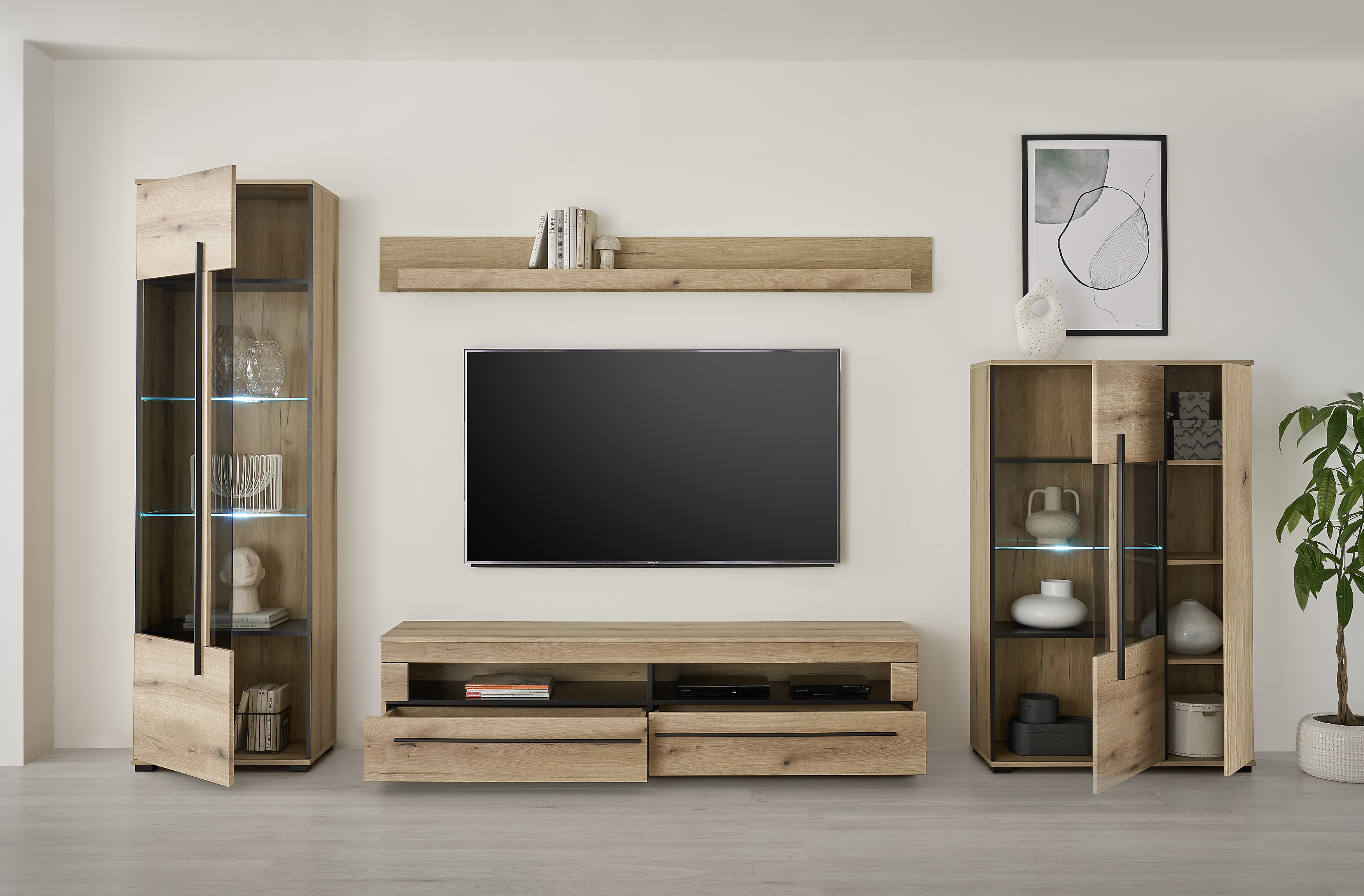 | Equipement murs TV: | Casiers ouverts, Tiroirs | ||