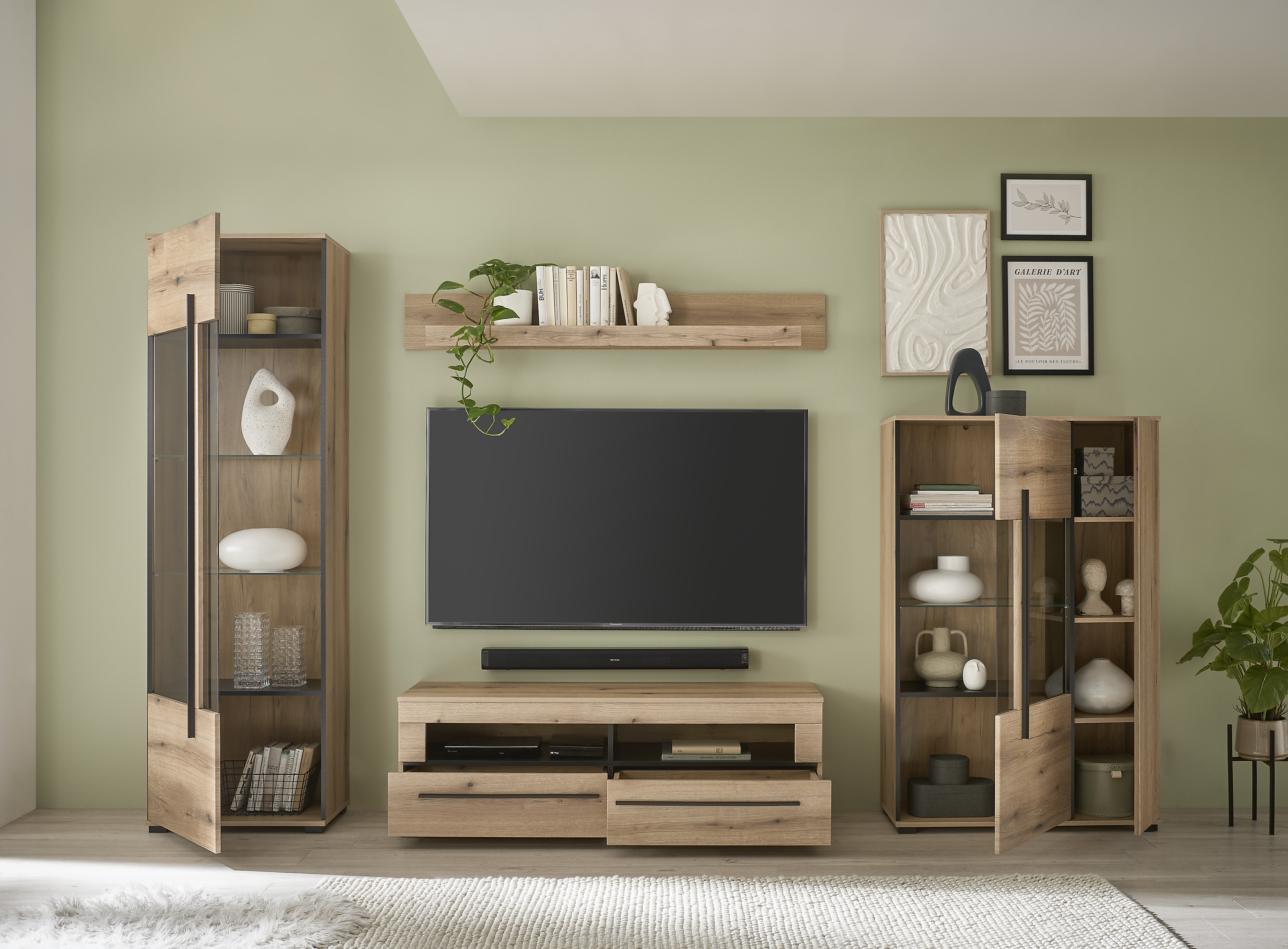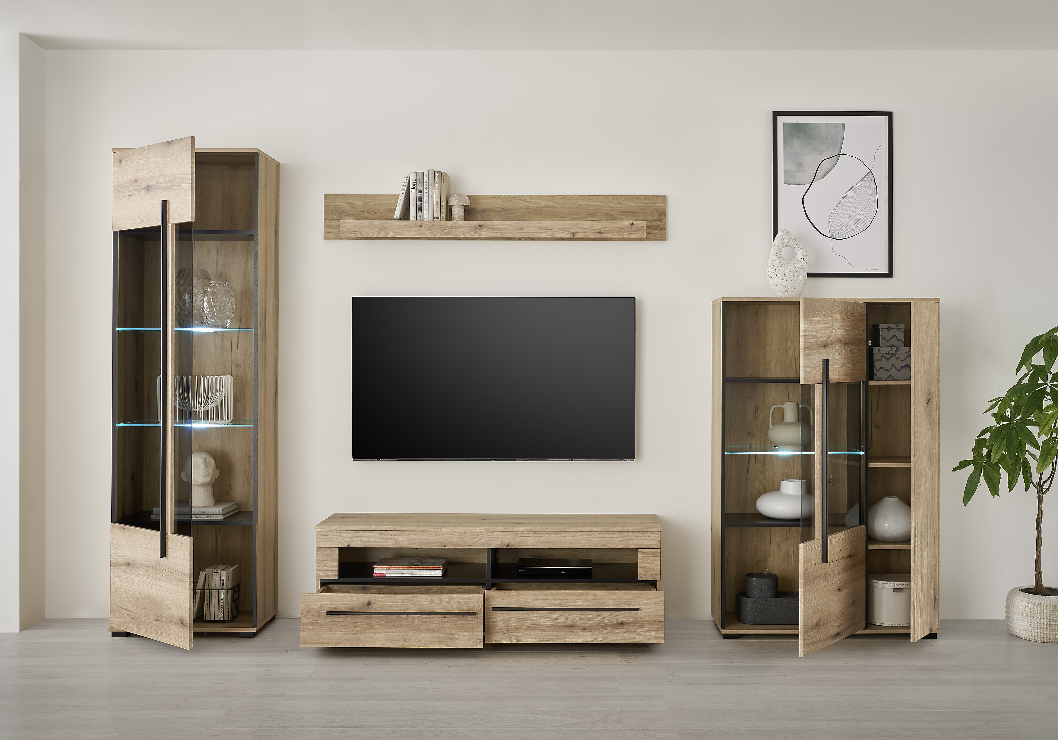 | Equipement murs TV: | Casiers ouverts, Tiroirs | ||