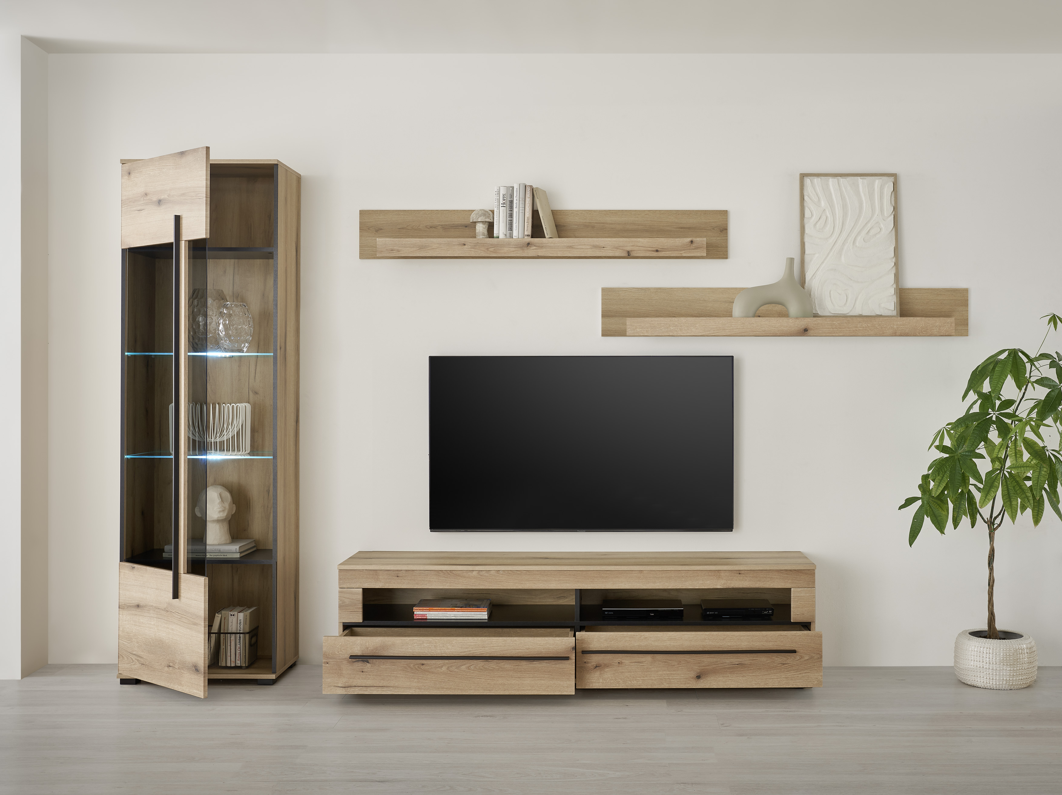 1 banc TV avec 2 casiers pour l'équipement et 2 tiroirs