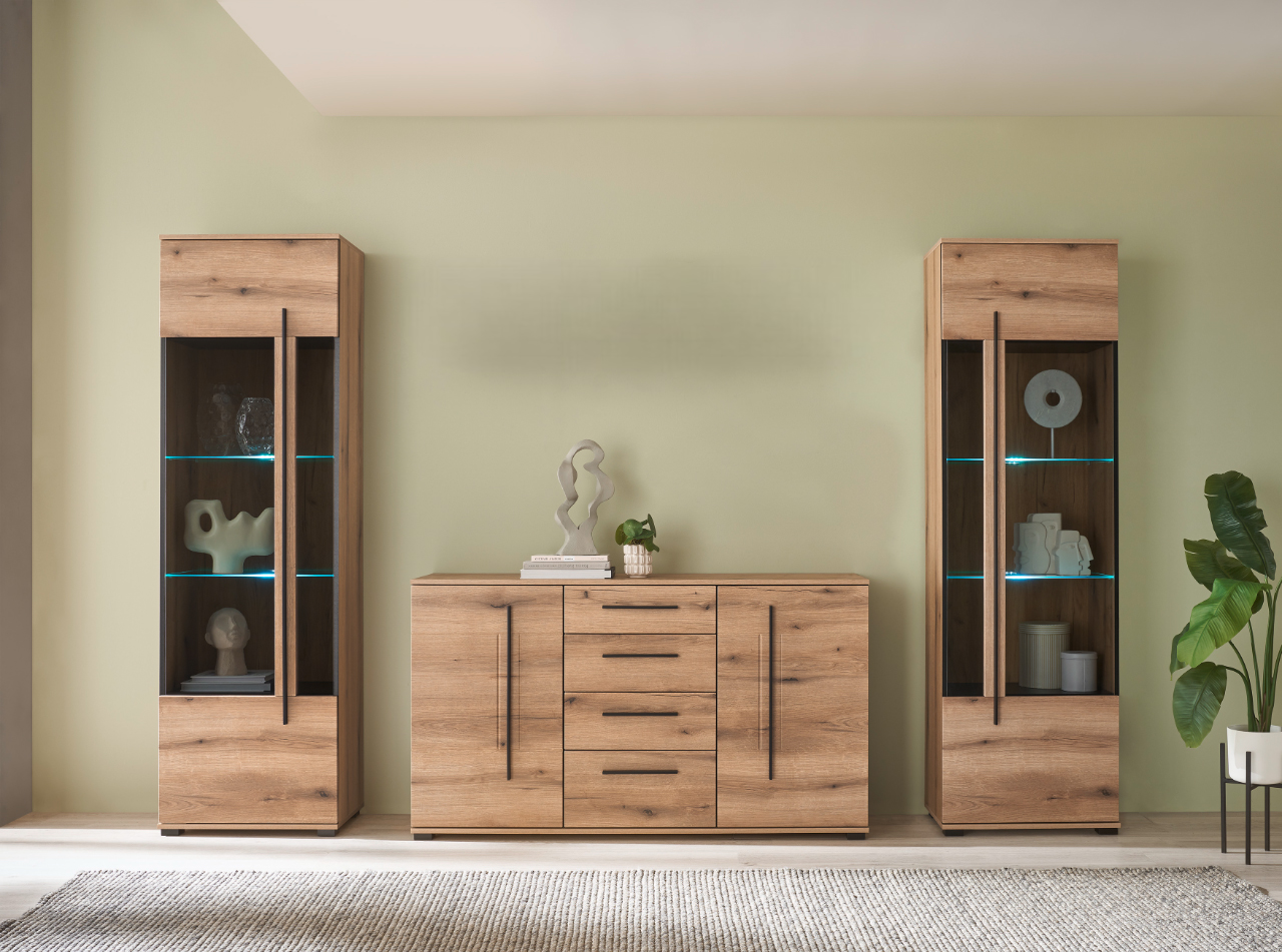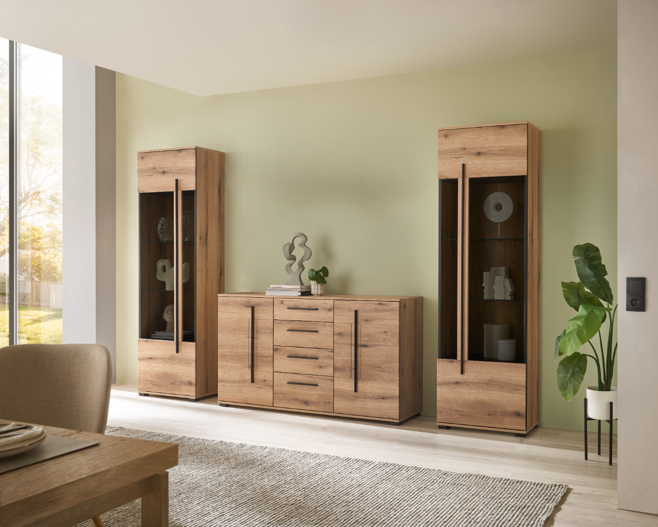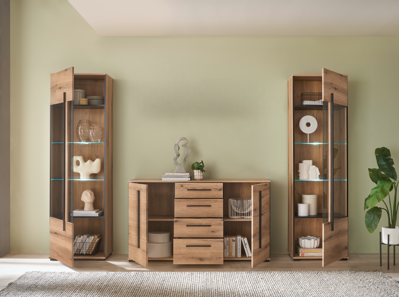 1 bahut avec 2 portes, 2 tablettes fixes et 4 tiroirs