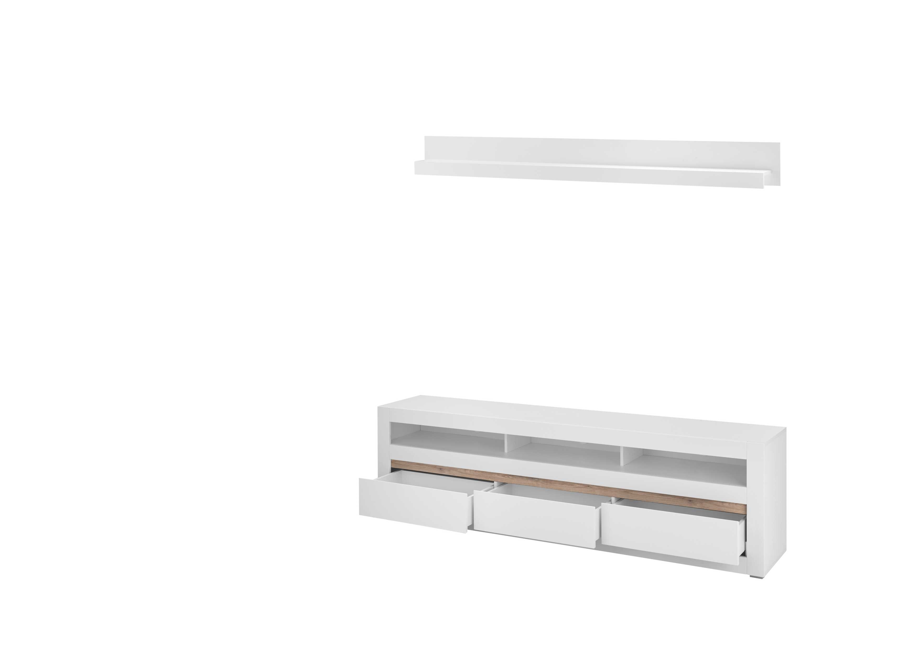 1 banc TV avec 3 casiers pour l'équipement et 3 tiroirs