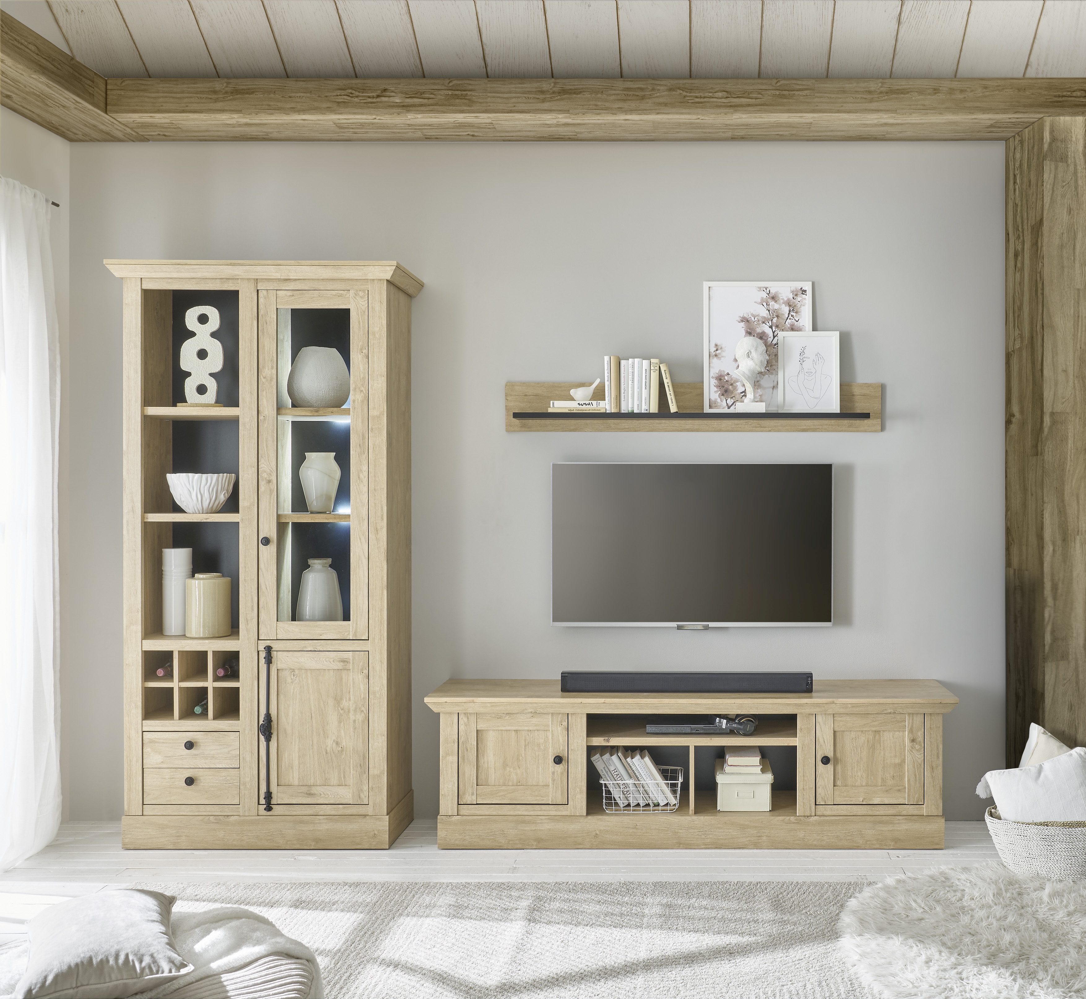 1 banc TV avec 2 portes et 3 casiers ouverts