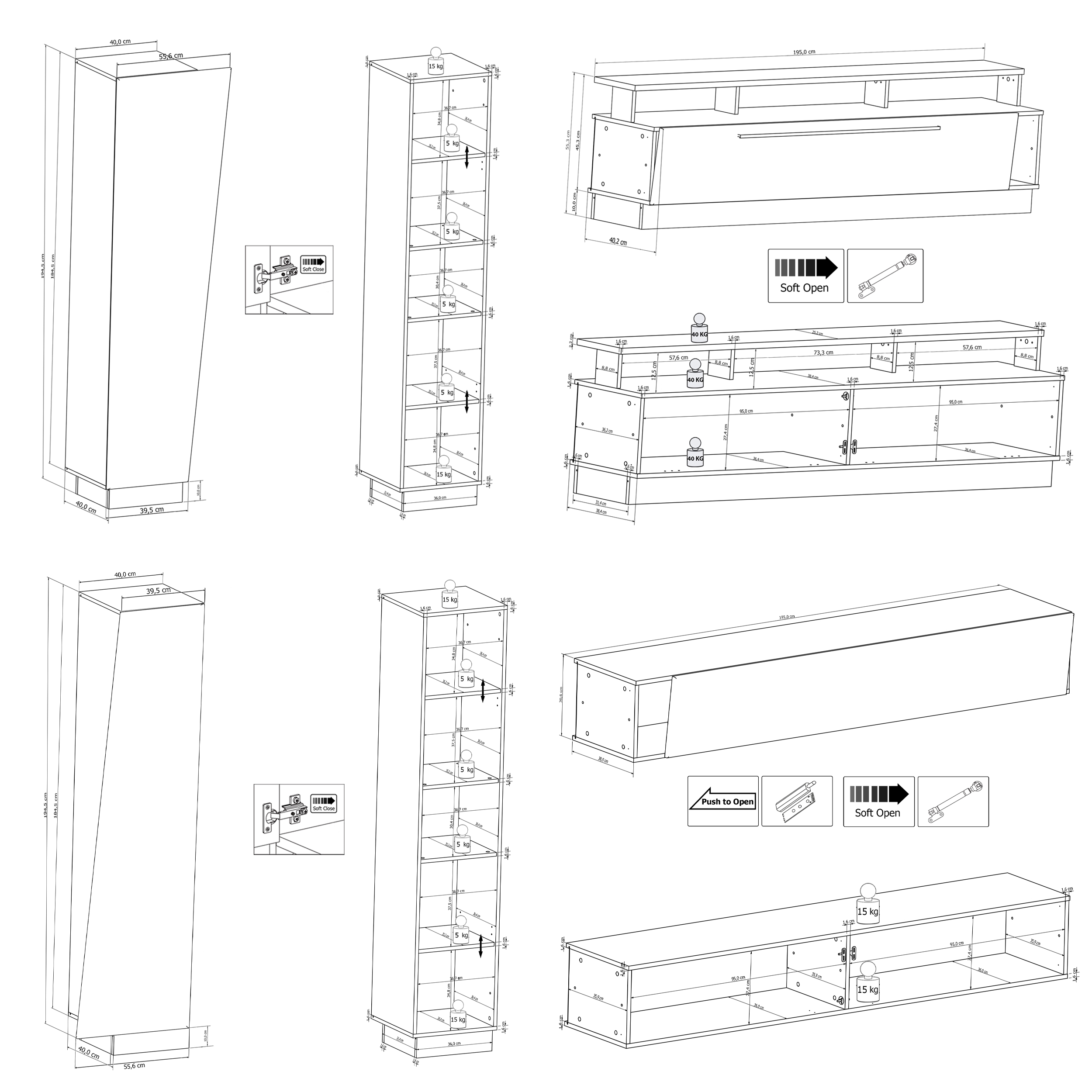 | Equipement murs TV: | Casiers ouverts | ||