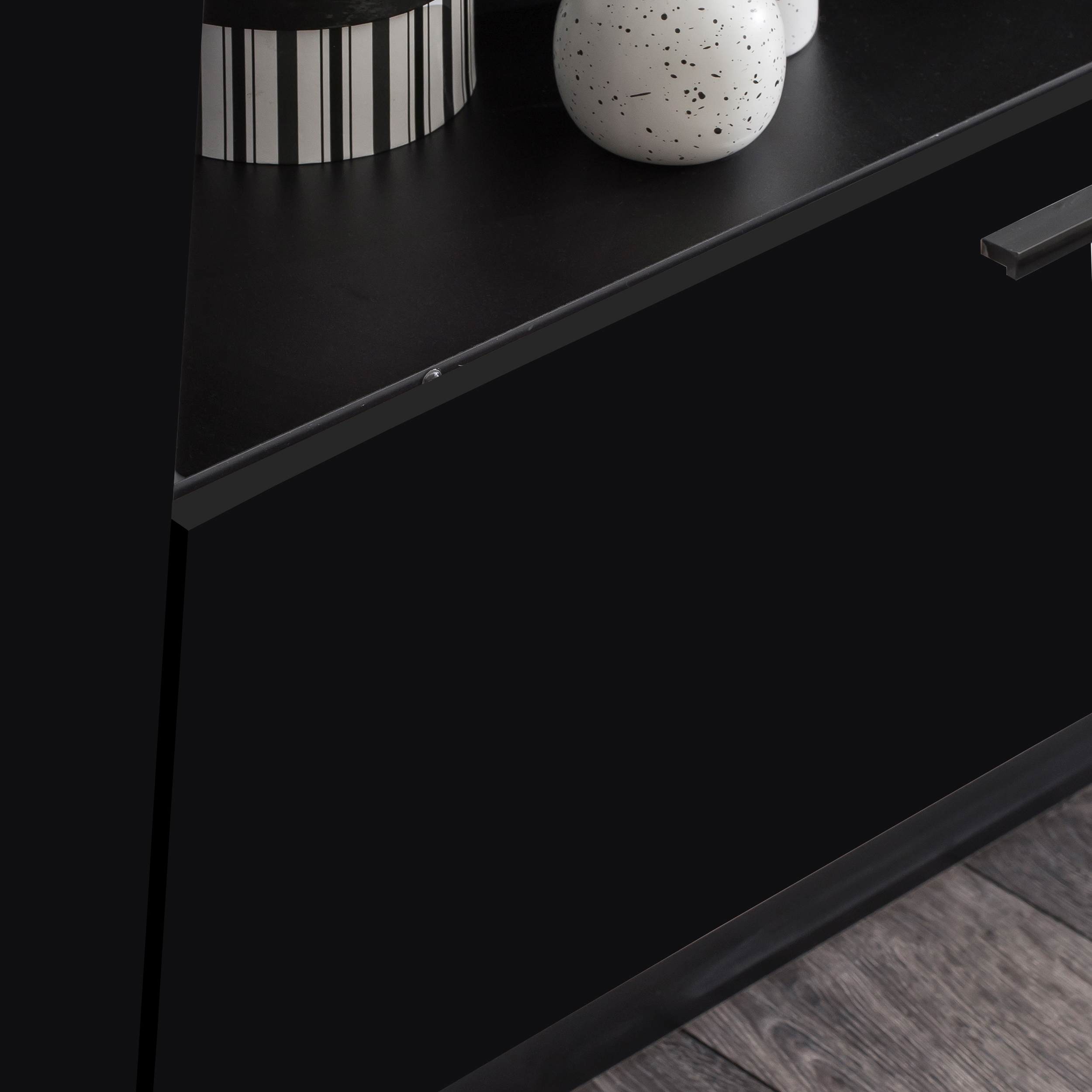 Façade : MDF (panneau de fibres de bois de moyenne densité) ton noir ultra brillant