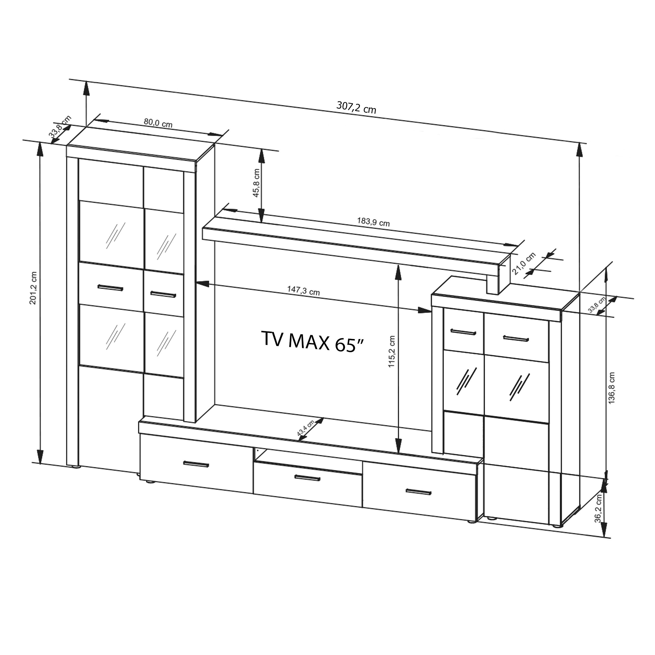 | Dimensions : | L/H/P env. 307,2/201,2/43,4 cm | ||