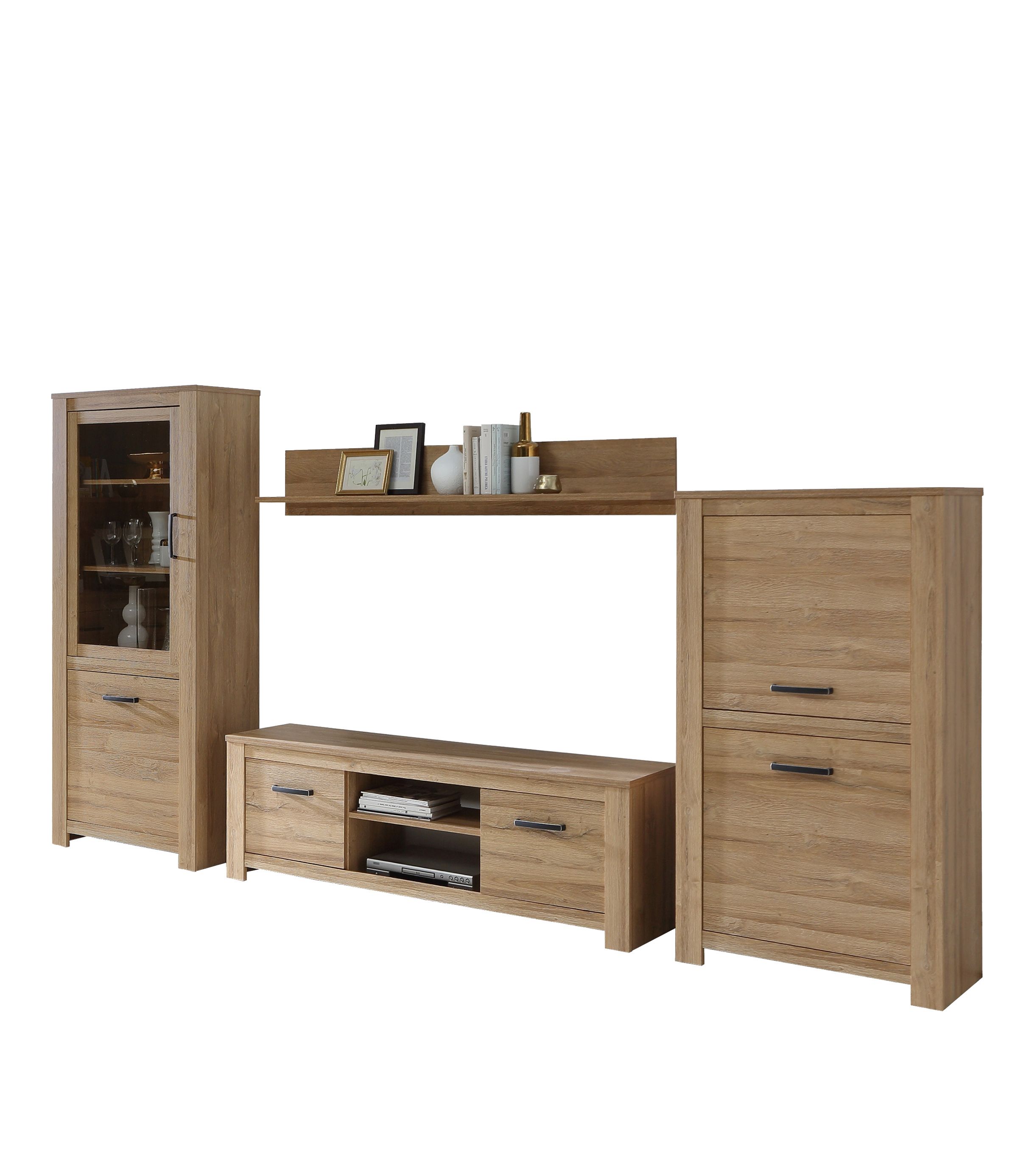 1 meuble TV avec 2 portes, 2 tablettes amovibles et 2 casiers ouverts