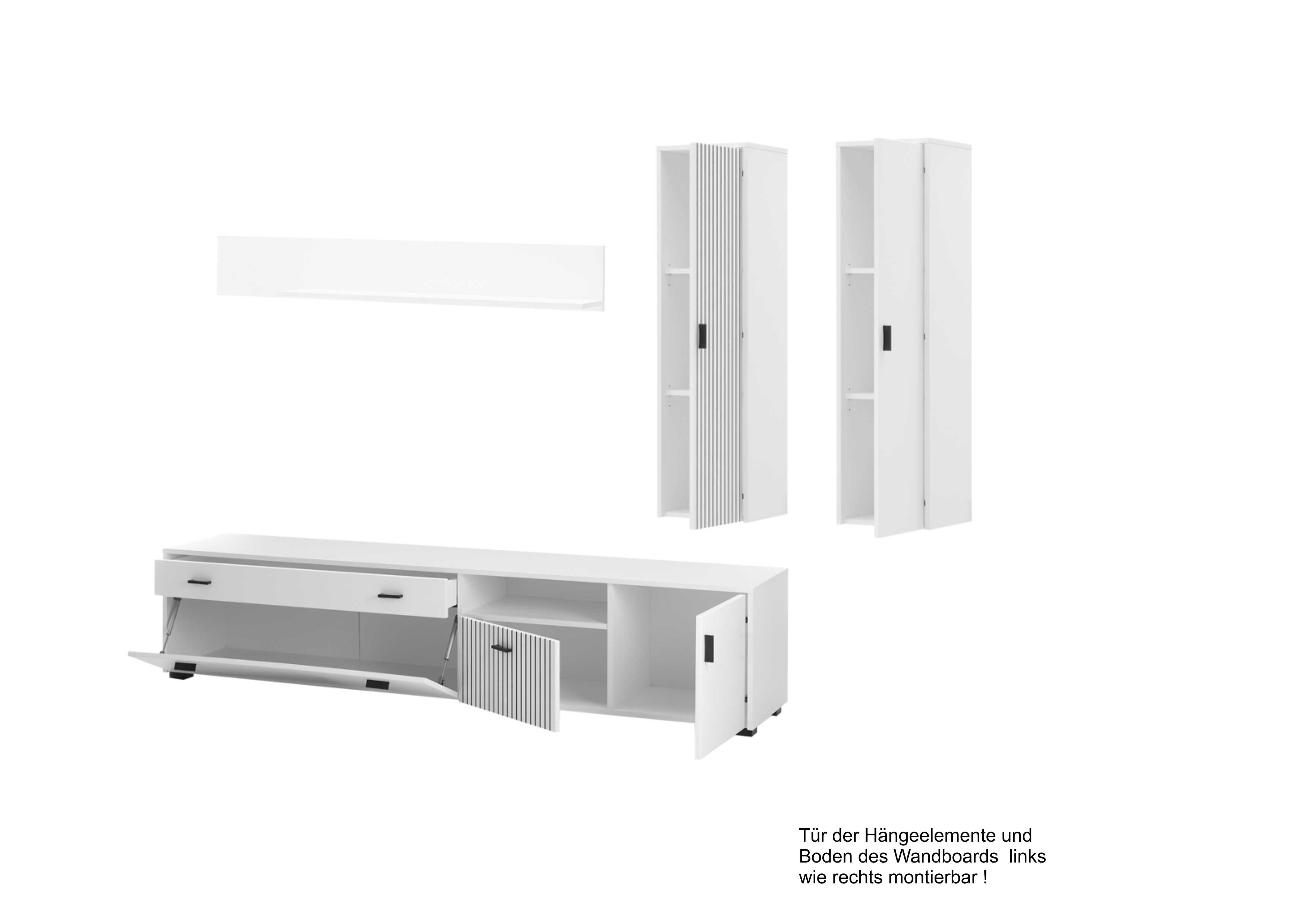 2 meubles hauts avec, chacun, 1 porte (avec ouverture à droite ou à gauche) et 2 tablettes amovibles