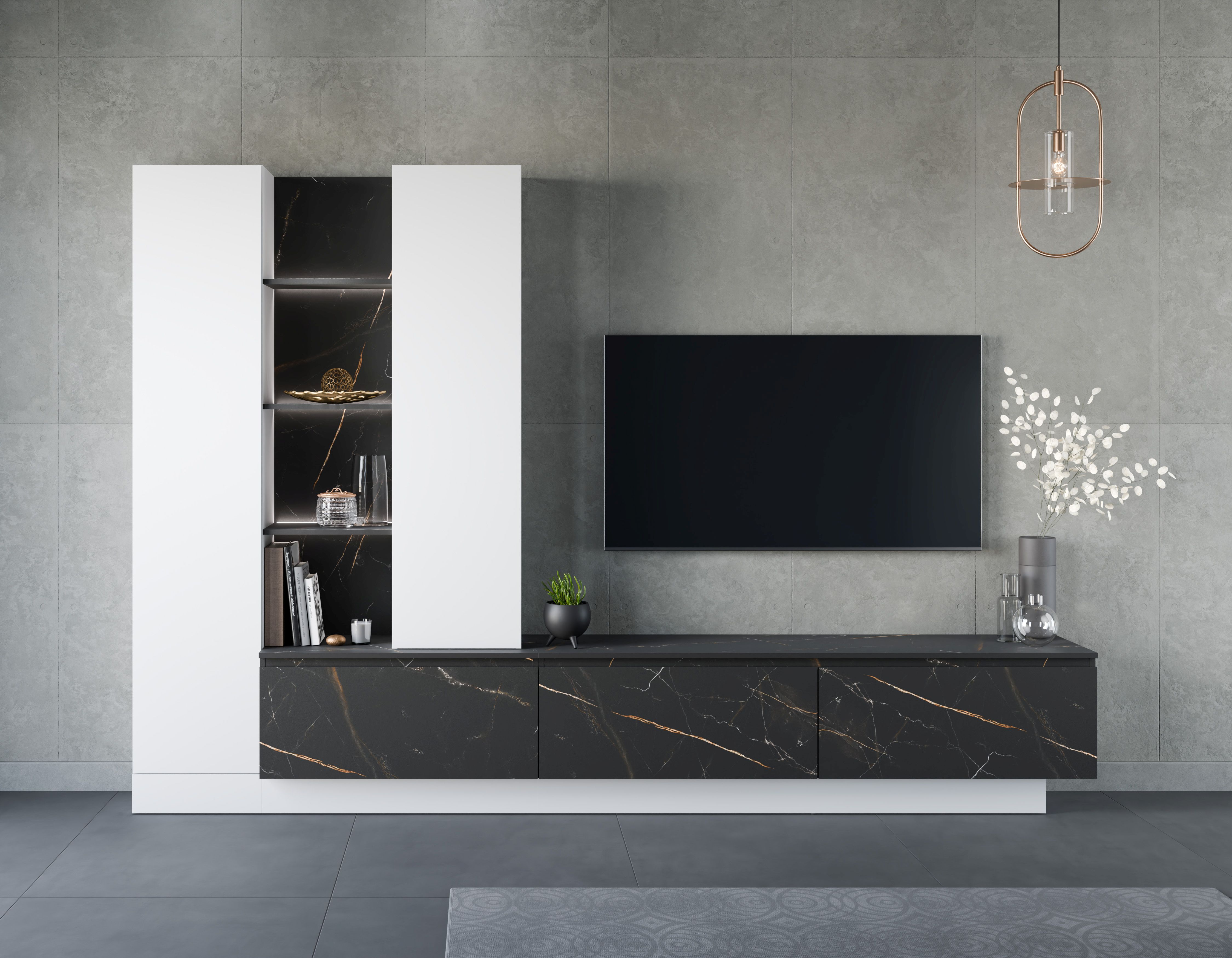 Caisson : ton blanc alpin et aspect marbre San Sebastian