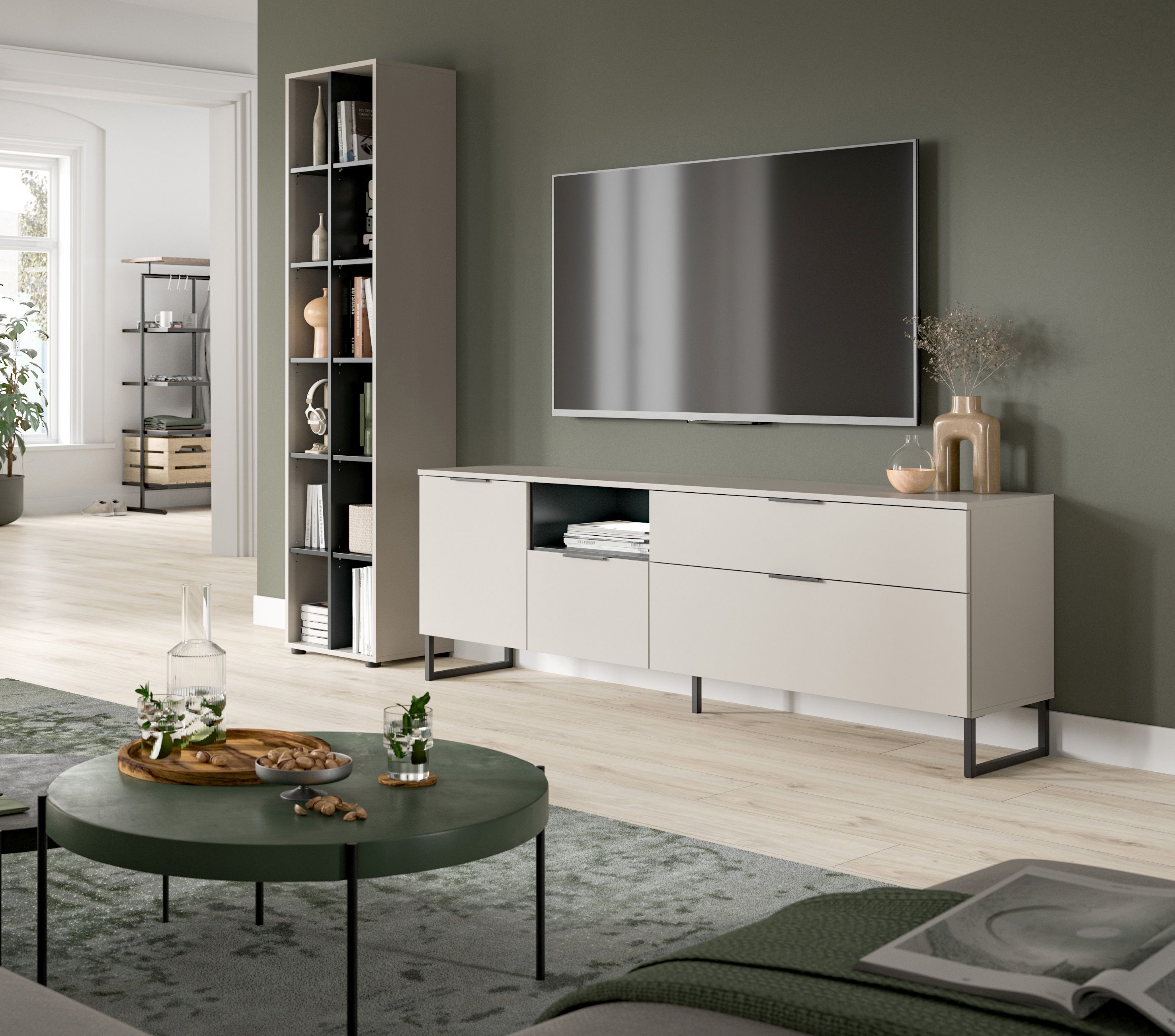 Cet ensemble 4 éléments avec éclairage en décor cachemire (dimensions : L/H/P : 245 x 192 x 41 cm) comprend une étagère de rangement, un banc TV, un lot de 2 spots et un lot de 4 spots à encastrer. Sa surface facile d’entretien dans un coloris tendance lui confère un look moderne et élégant. L’éclairage intégré mettra en valeur vos objets tout en créant une atmosphère chaleureuse et agréable dans votre salon. Cette combinaison offre un vaste espace de rangement pour vos accessoires de vie et appareils multimédias, tout en contribuant à une organisation ordonnée et stylée de la pièce. Les meubles de qualité se distinguent par leur robustesse et leur longévité. Avec cet ensemble de séjour, vous apporterez à votre intérieur une touche de design, beaucoup de fonctionnalité et un éclairage d’ambiance.