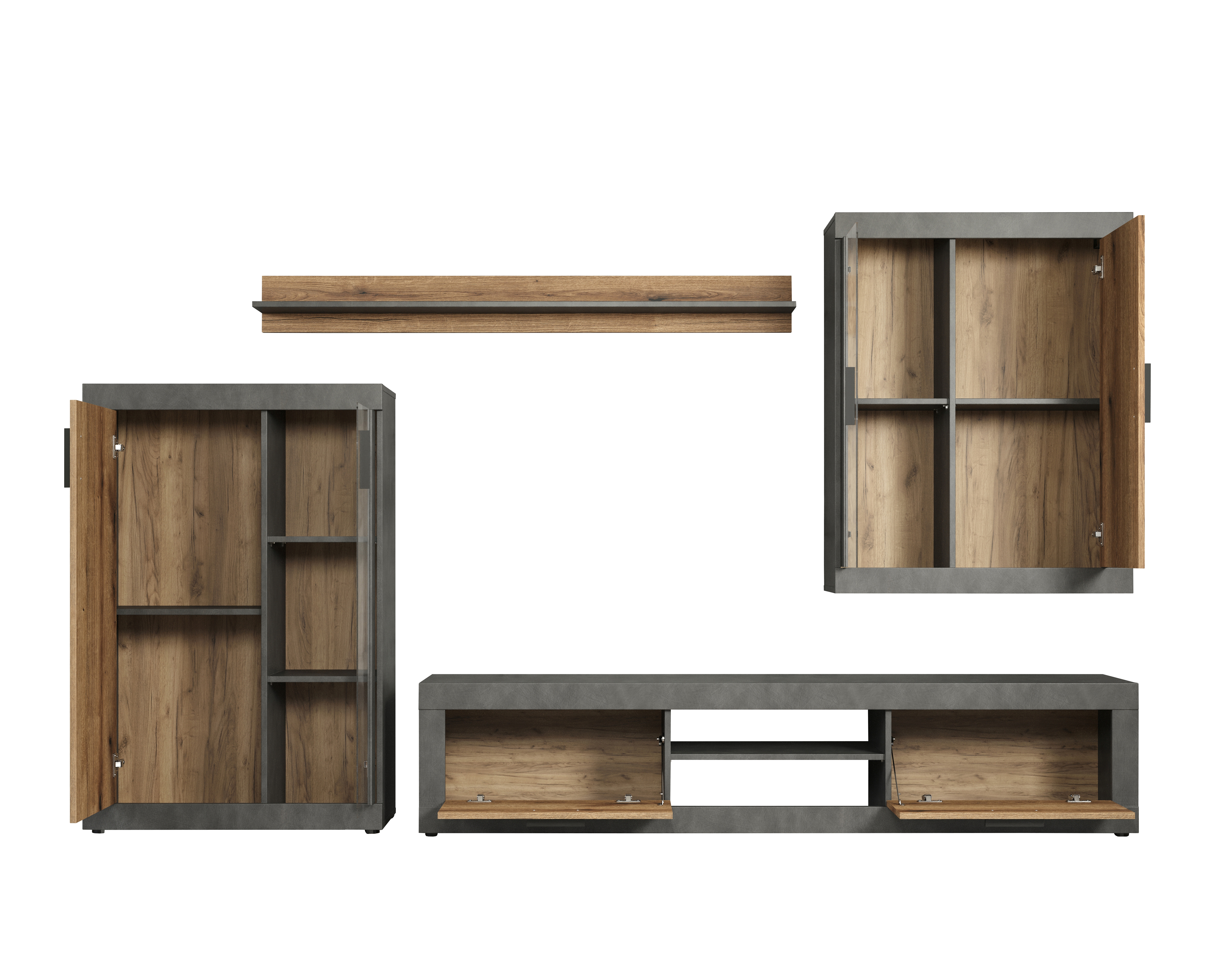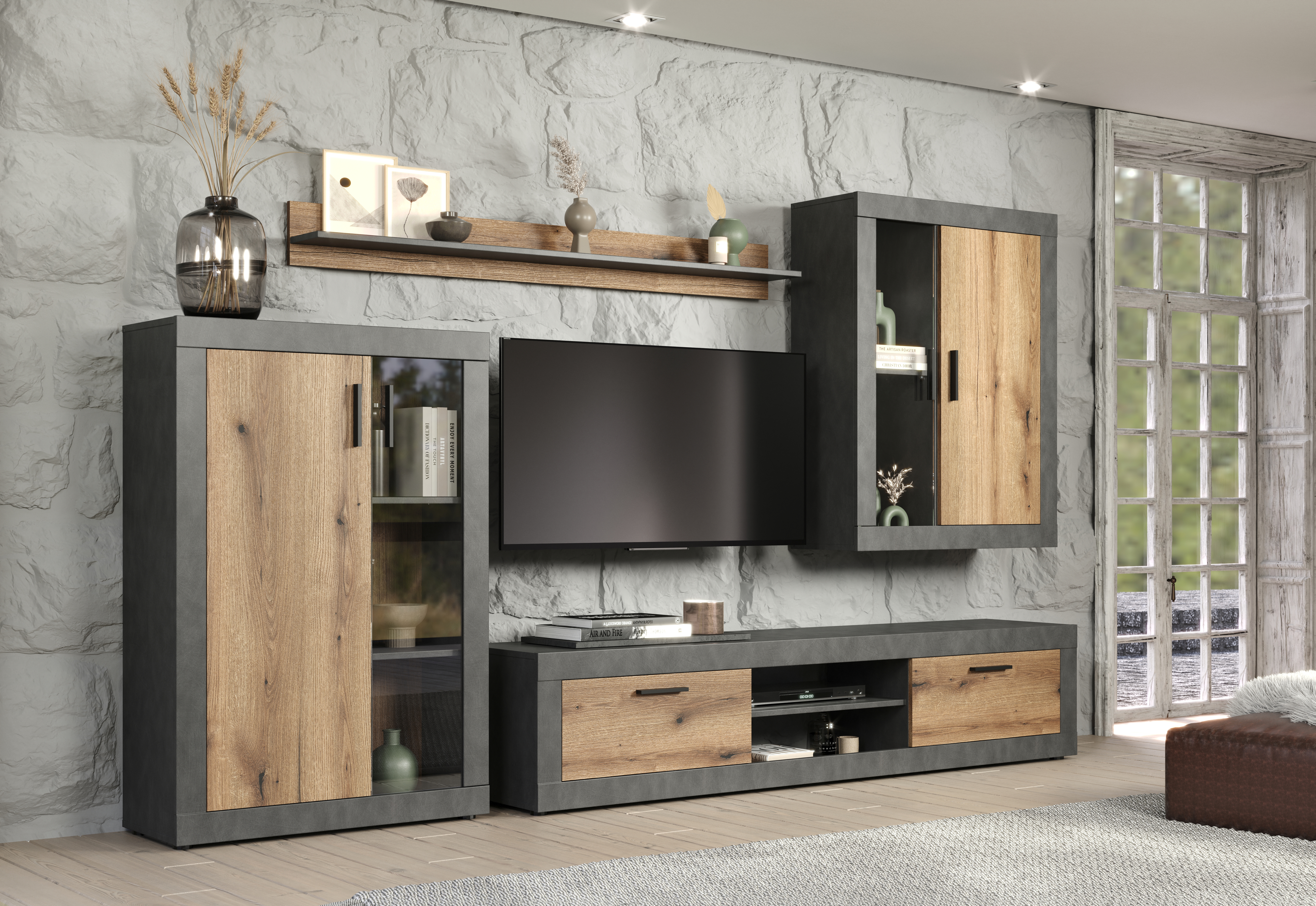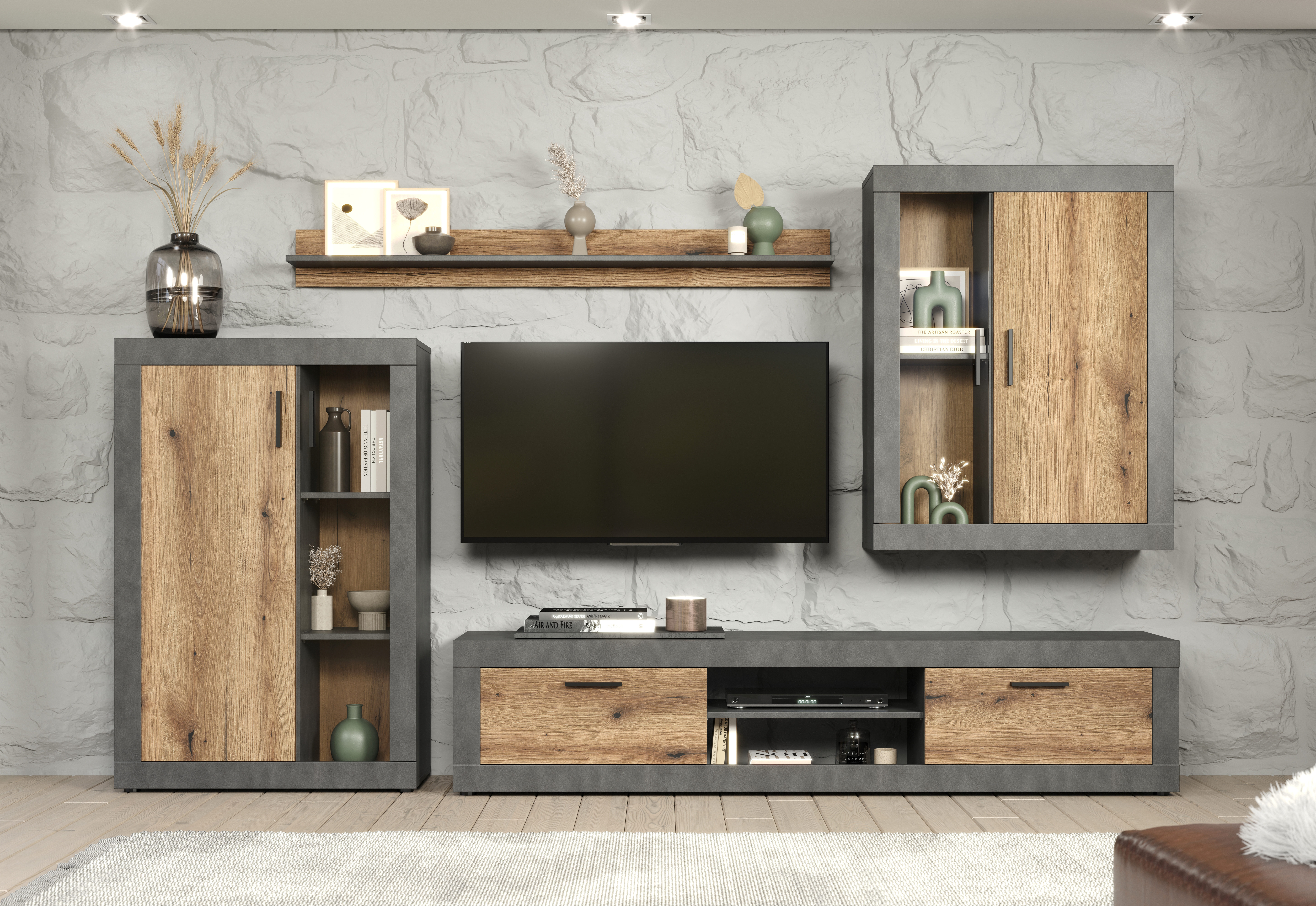 1 banc TV avec 2 abattants et 2 casiers ouverts