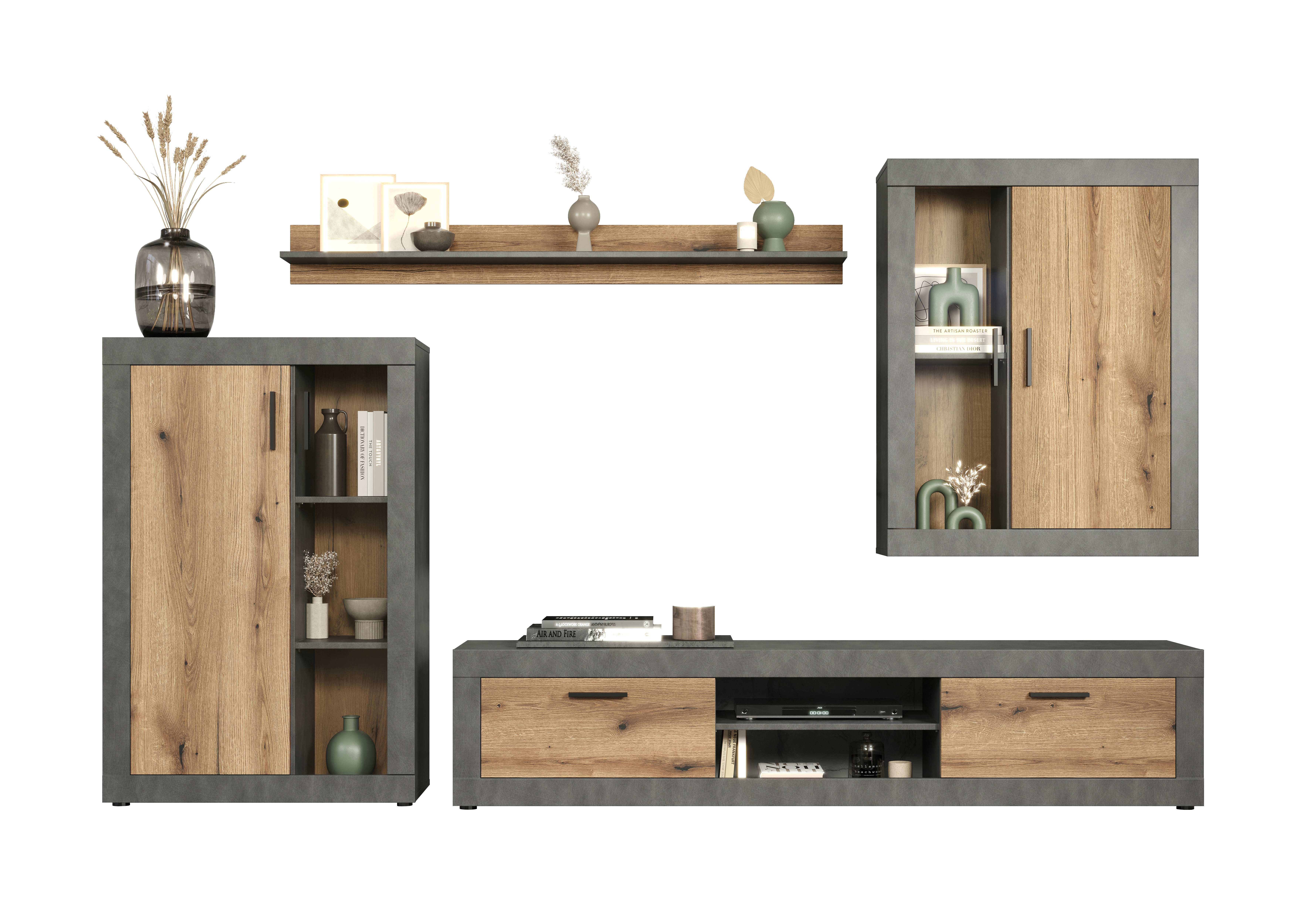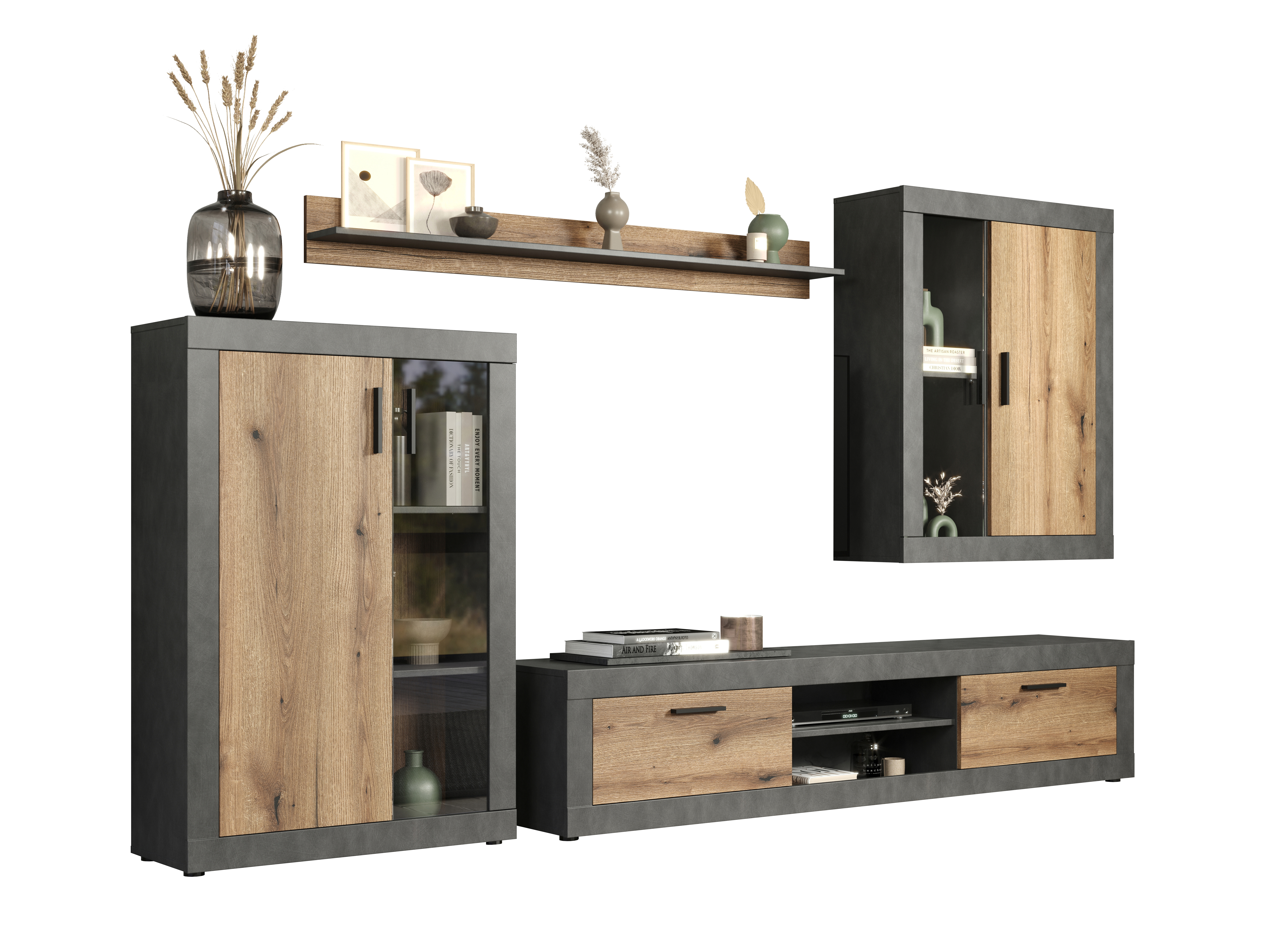 1 meuble haut vitrine avec 1 porte en verre, 1 porte en bois et 2 tablettes amovibles