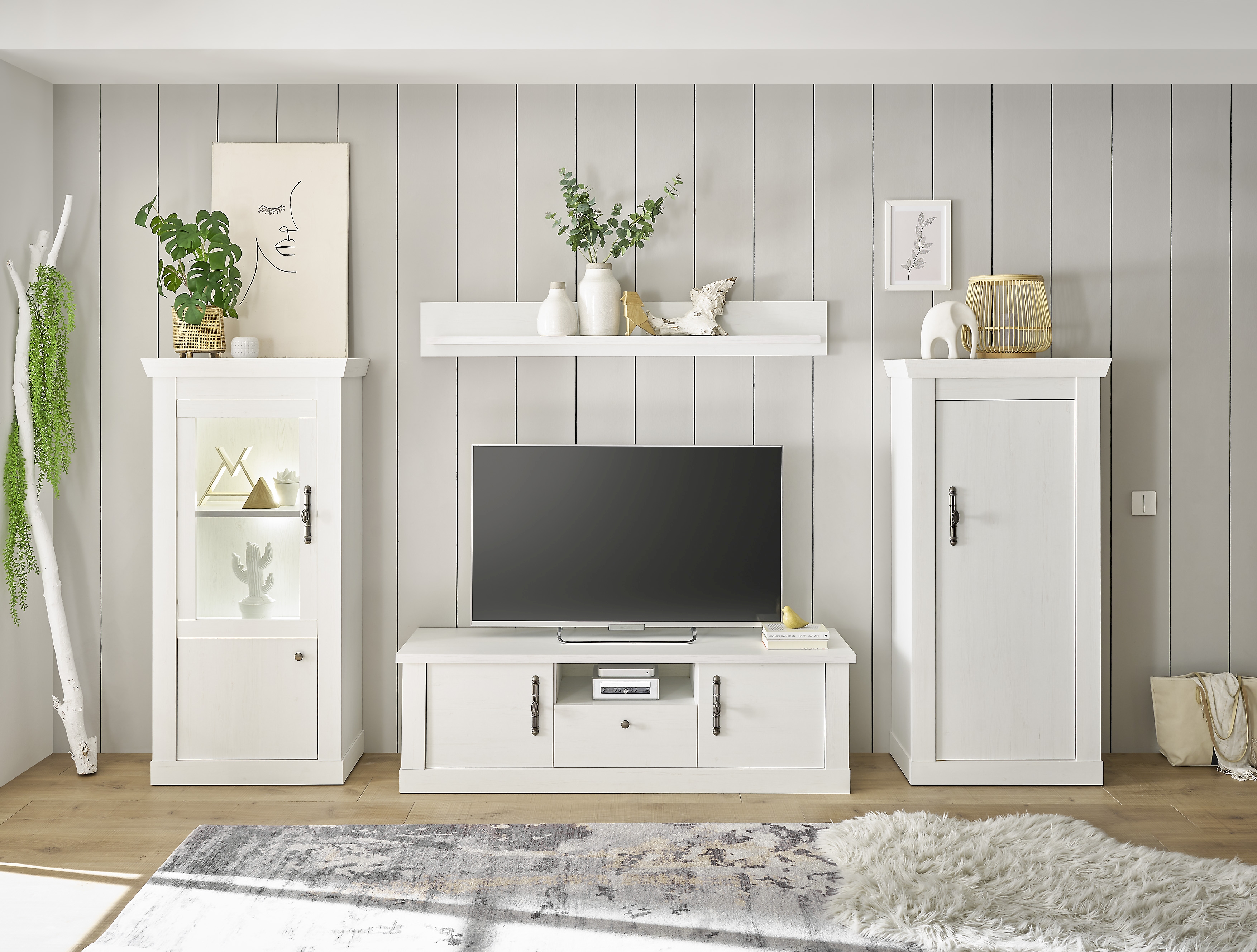 1 banc TV avec 2 portes, 1 tiroir, 1 casier pour l’équipement et 1 passe-câble
