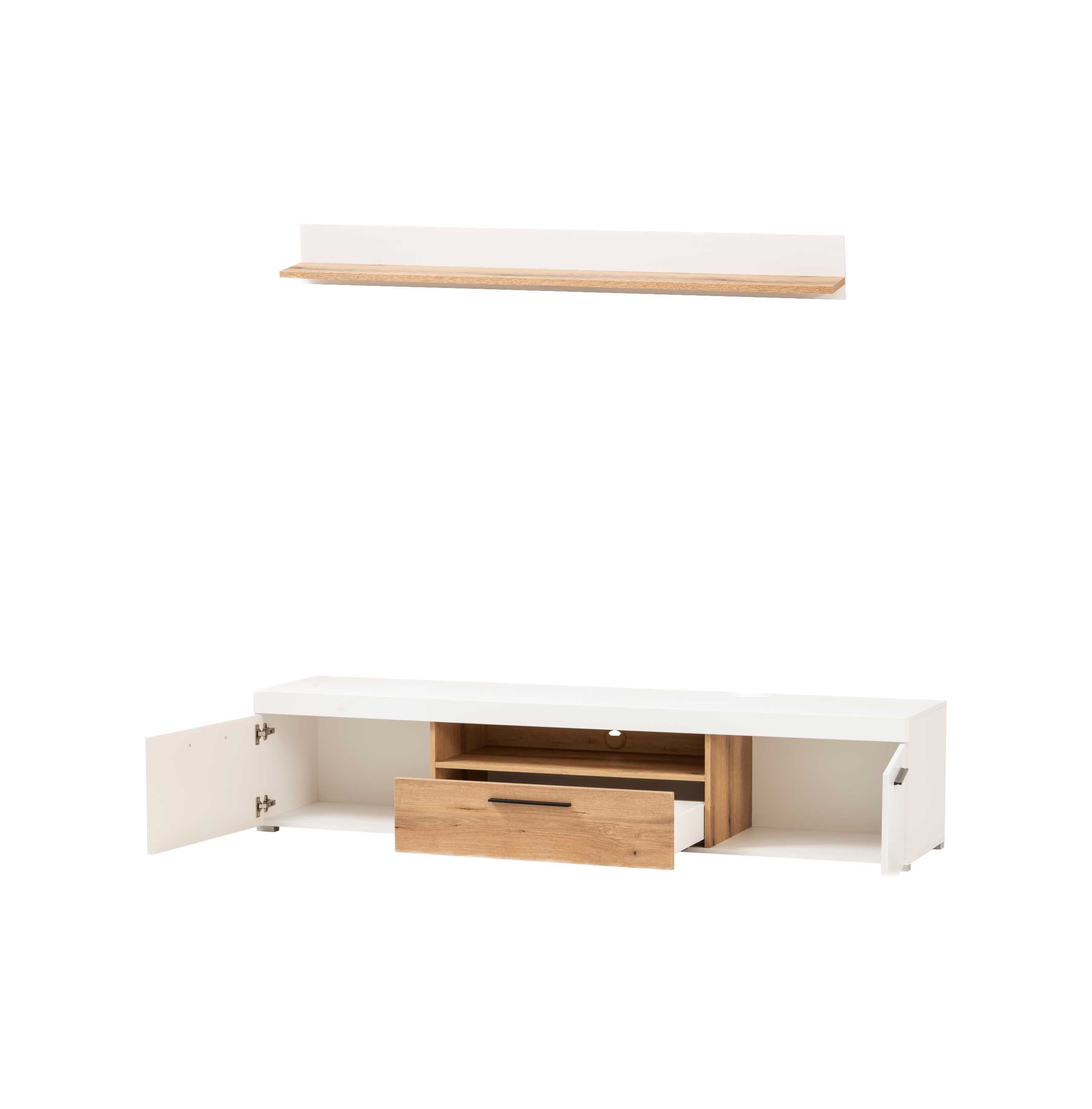 1 banc TV avec 1 tiroir, 1 porte et 1 casier pour l'équipement