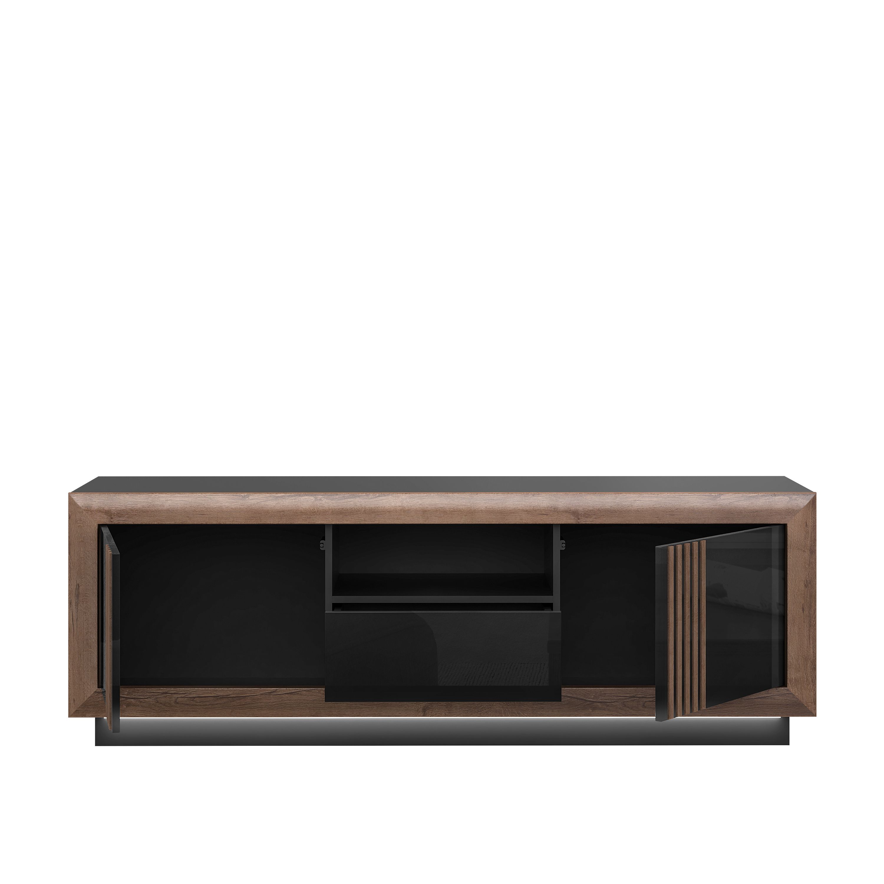 1 banc TV avec 2 portes, 1 tiroir et 1 casier ouvert