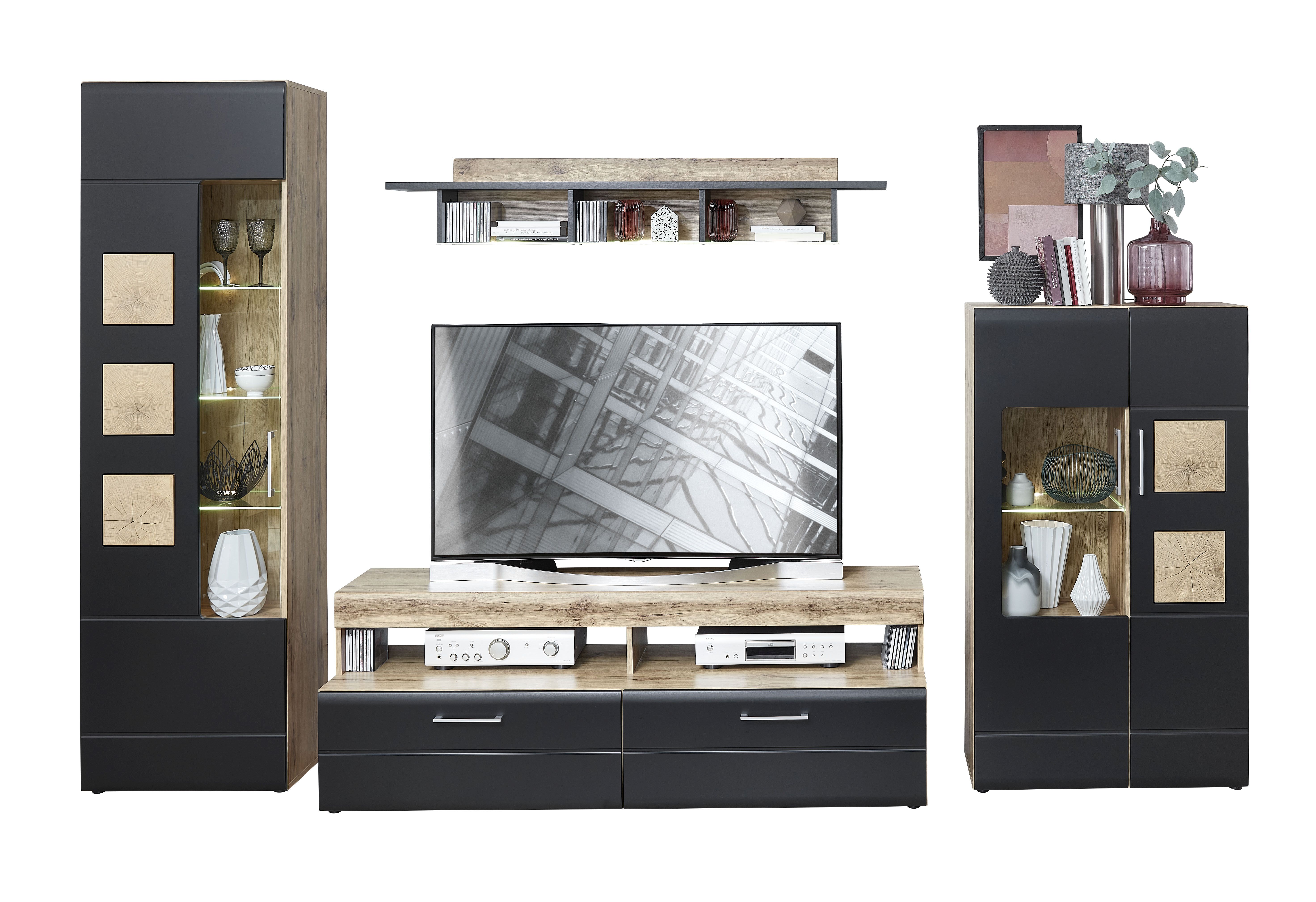 Equipement murs TV: | Casiers ouverts, Tiroirs, incl. éclairage | ||