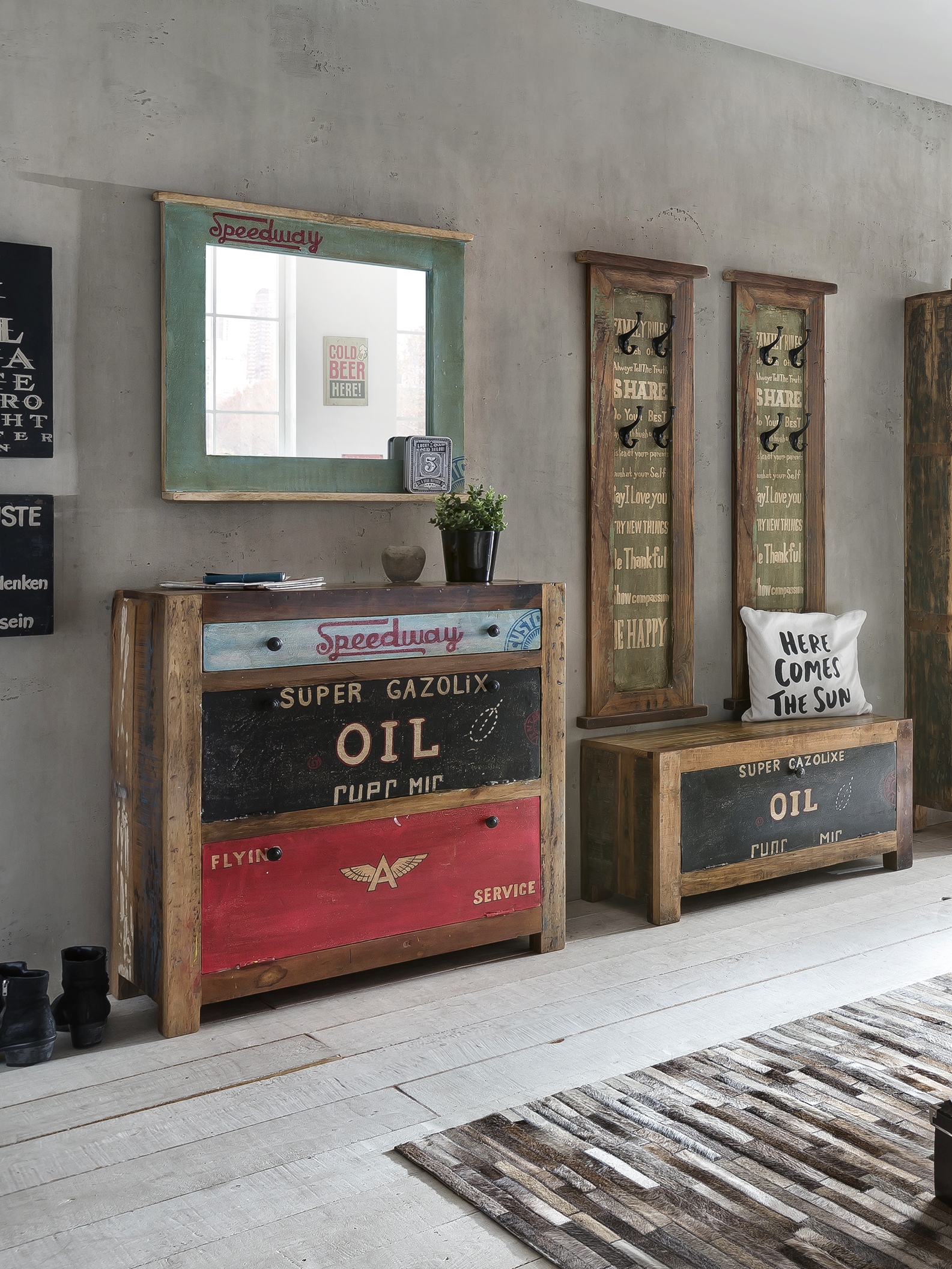 Panneau : vieux bois recyclé massif (Inde) laqué ton multicolore