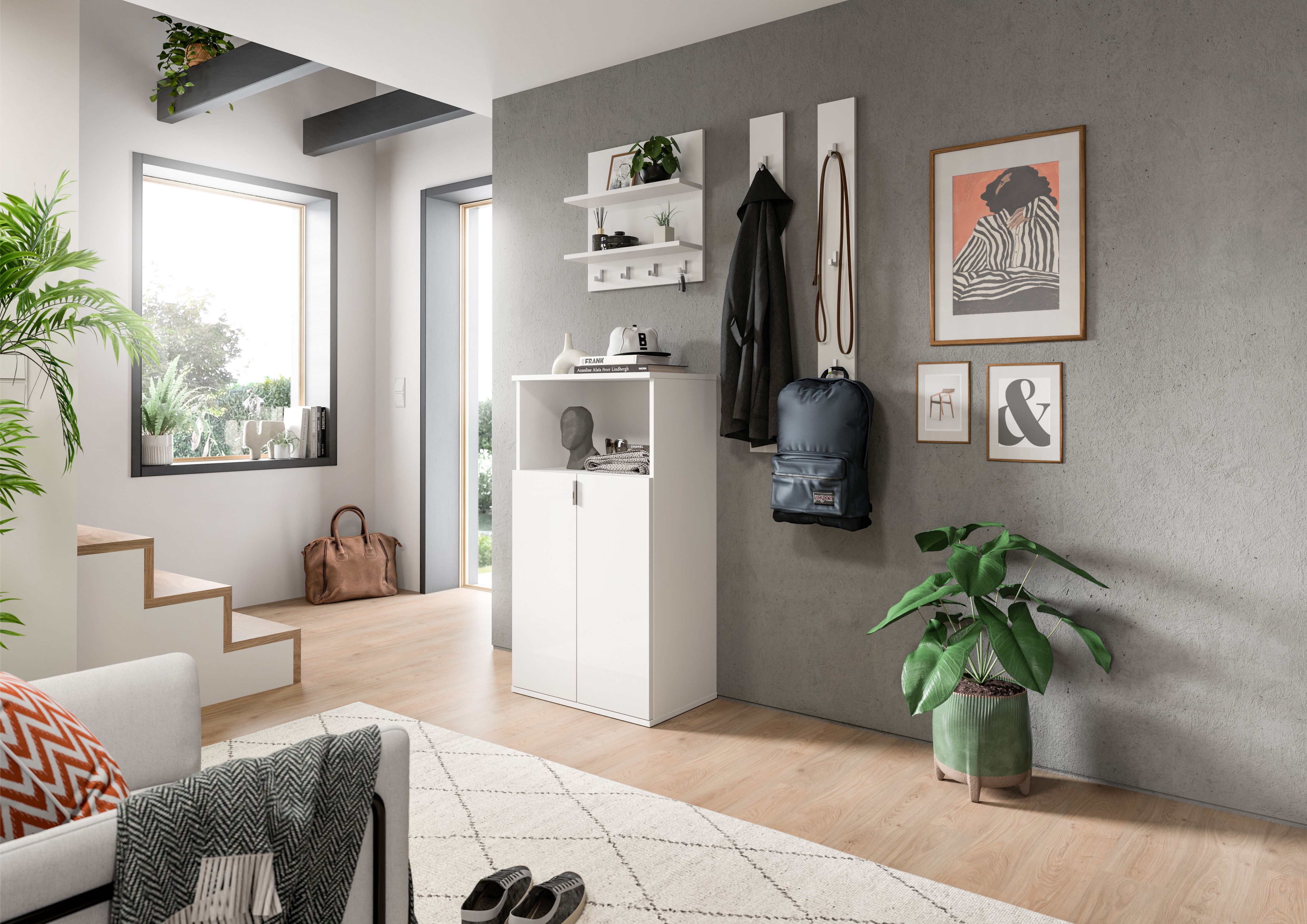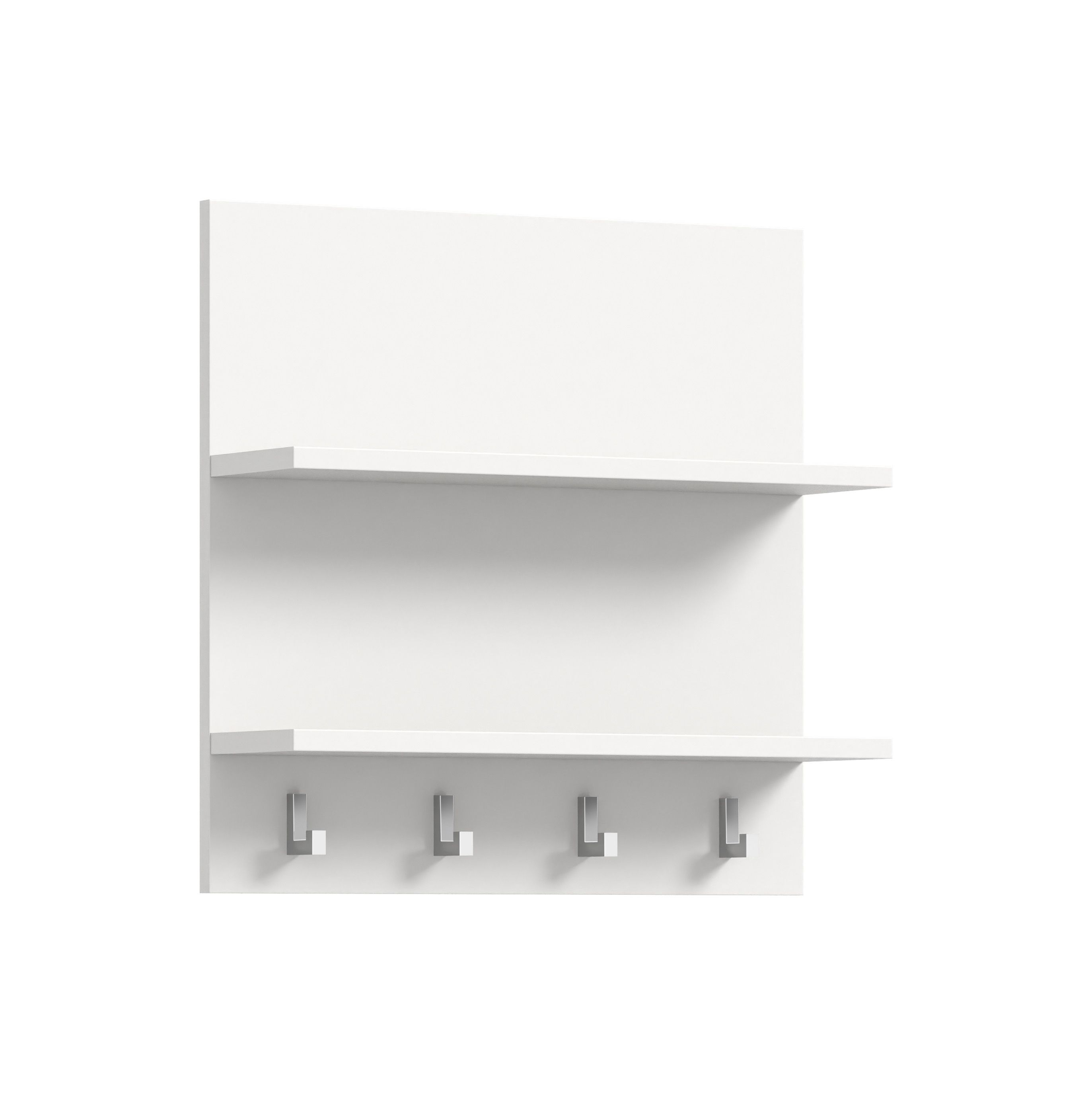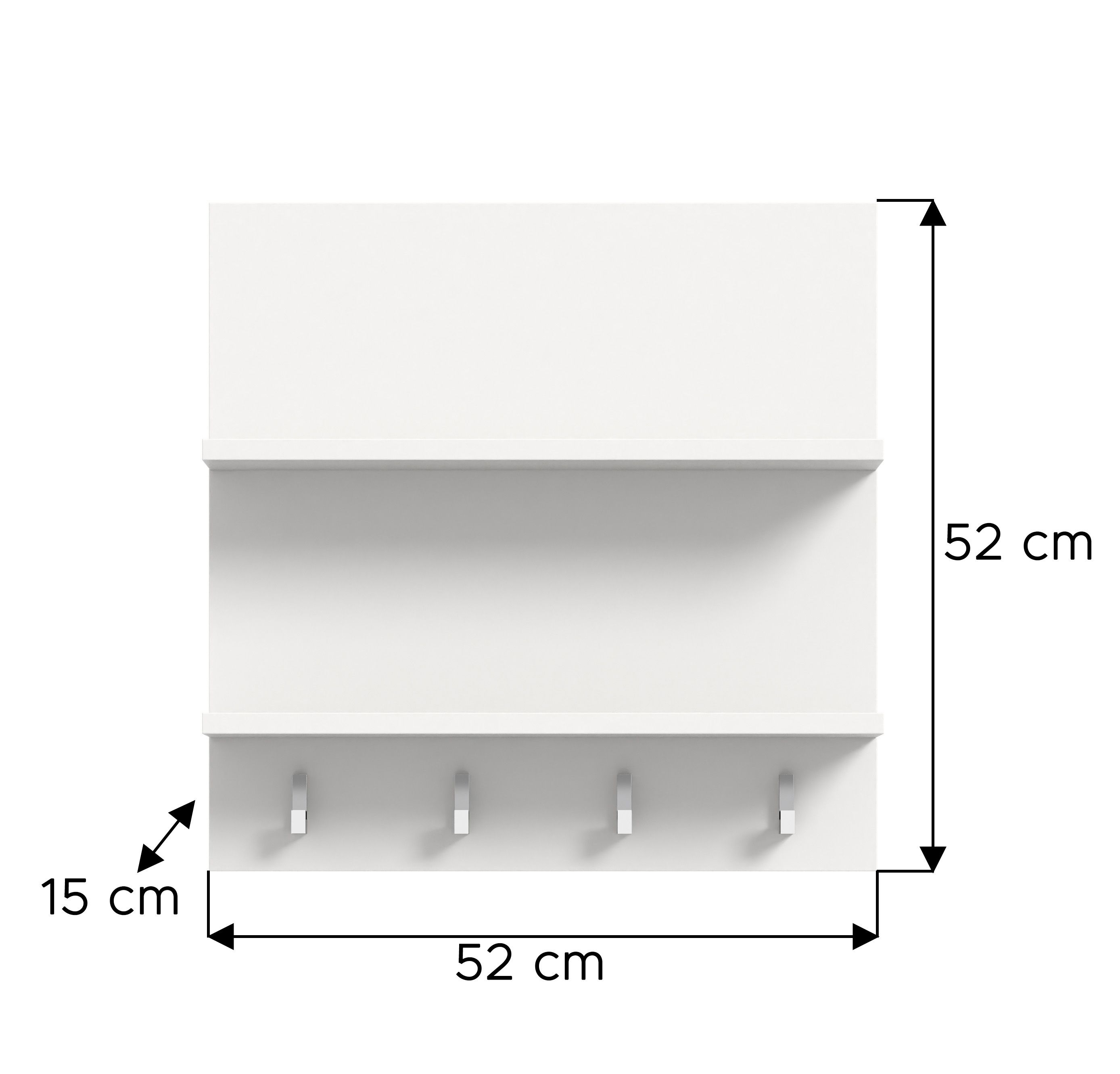 Cet élégant panneau mural ton blanc ultra brillant (L/H/P : 52x52x15 cm) est la solution idéale pour une entrée organisée et stylée. Ce panneau portemanteau moderne dispose de deux tablettes spacieuses offrant un espace pratique pour déposer sacs, clés ou objets de décoration, tandis que ses quatre crochets argentés permettent de suspendre vestes et manteaux avec élégance. Son design épuré et contemporain s’intègre harmonieusement dans tous les styles d’intérieurs, apportant à votre entrée ou à votre salon une touche de fraîcheur et de modernité. La finition ton blanc ultra brillant reflète la lumière et donne à la pièce une sensation d’espace et de clarté. Grâce à ses dimensions compactes, ce panneau est polyvalent et s’adapte parfaitement aux petits espaces. Facile à monter, il constitue un choix idéal pour celles et ceux qui souhaitent allier fonctionnalité et esthétique. Apportez une note originale à votre intérieur avec ce panneau portemanteau raffiné et profitez d’une solution pratique pour une entrée ordonnée et accueillante.