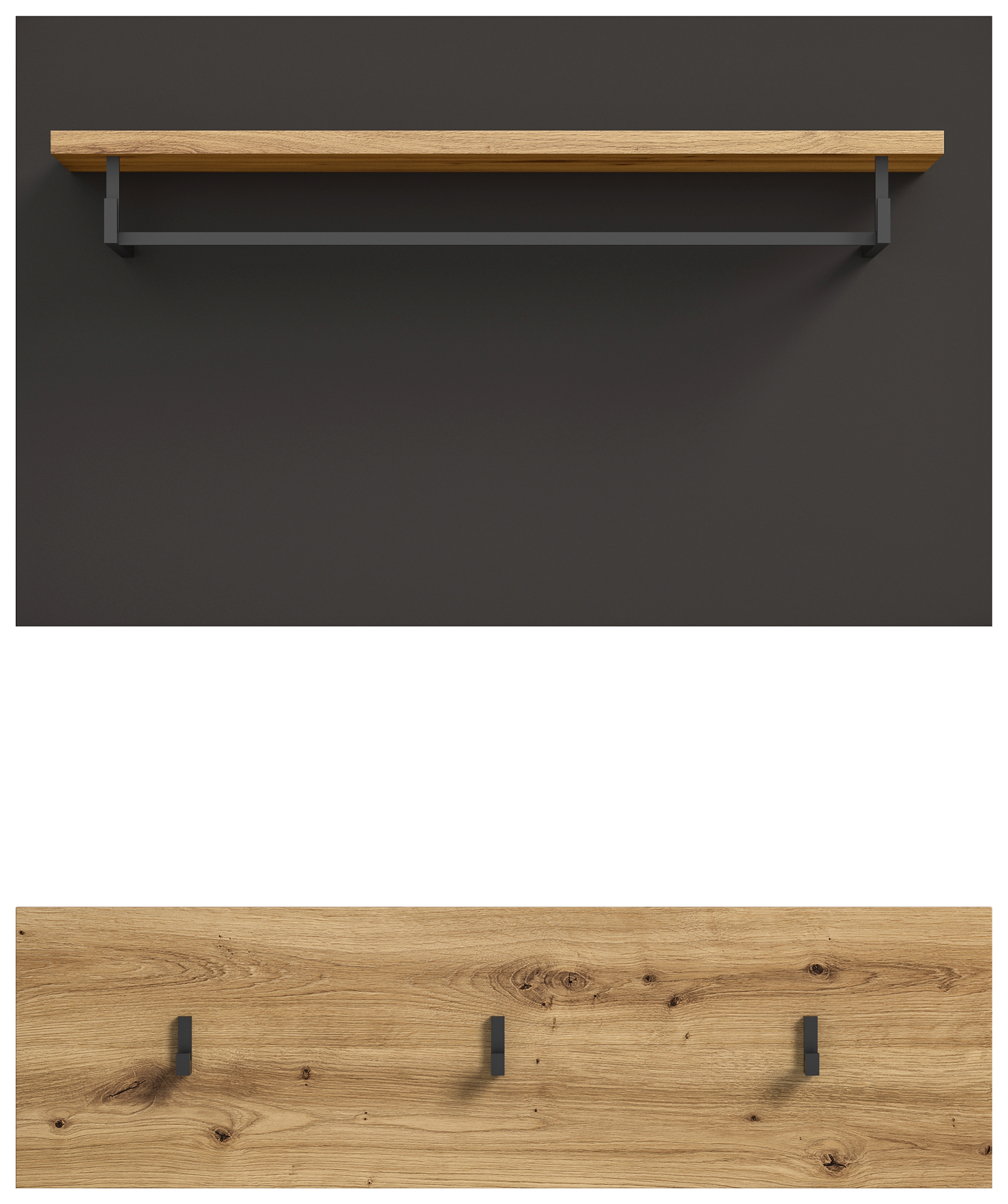 Notre portemanteau mural (dimensions 80x73x27 cm) n’est pas seulement un meuble de rangement pratique ; c’est aussi un élément décoratif stylé pour l’entrée. Grâce à l’association du ton gris basalte et du décor chêne Artisan, cet ensemble conférera à votre pièce une ambiance tendance et conviviale. Ce panneau offrant suffisamment de place pour suspendre les vestes, manteaux et accessoires est la solution idéale pour une entrée accueillante et bien rangée. Découvrez dès maintenant ce meuble esthétique et polyvalent pour la maison.
