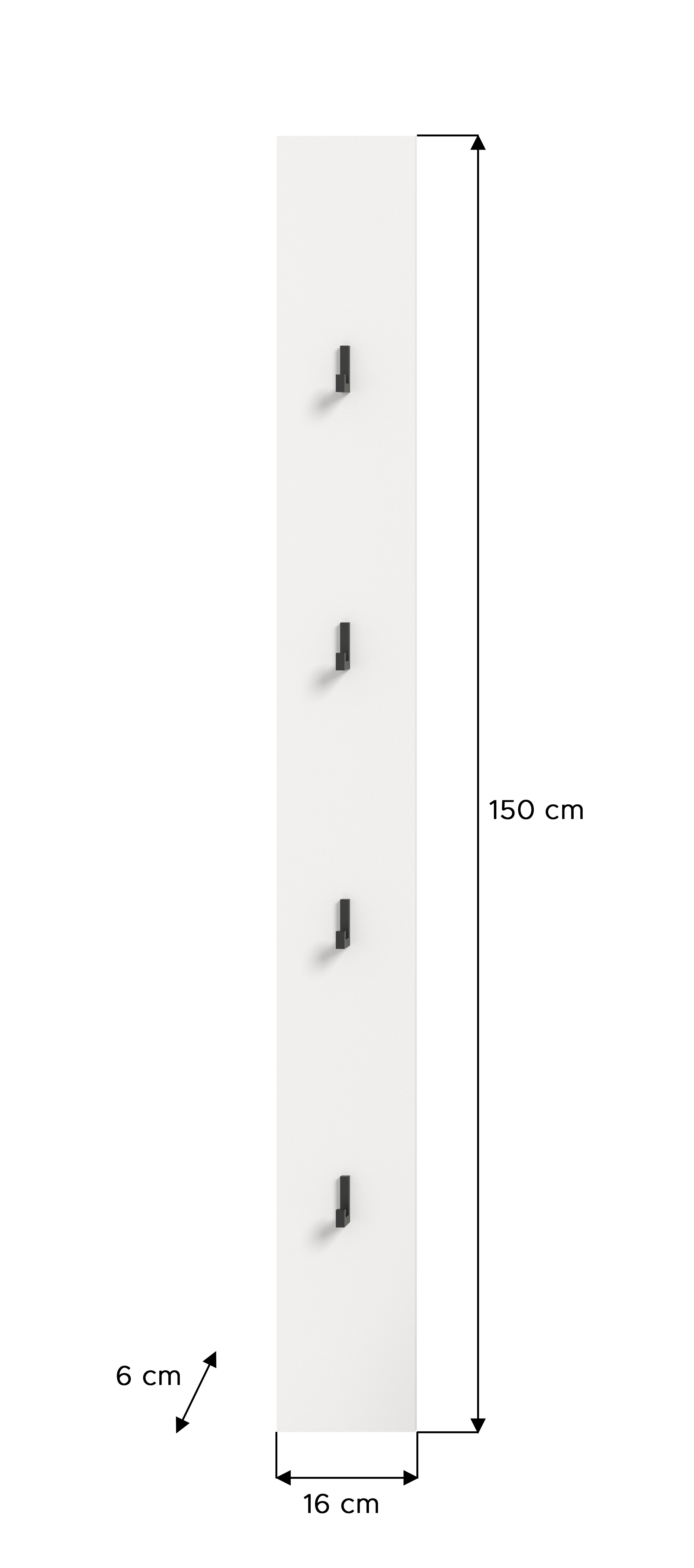 Cette patère murale séduit par son apparence claire et moderne en décor blanc. La façade en mélaminé de qualité ton blanc est facile d’entretien et confère une élégance intemporelle à chaque pièce. Grâce à ses dimensions compactes, elle offre une solution gain de place tout en proposant suffisamment d’espace pour suspendre peignoirs et autres accessoires. Avec cette patère, associez fonctionnalité et design intemporel. Idéale pour les pièces à vivre, la chambre ou le bureau, elle constitue un choix parfait pour celles et ceux qui recherchent une qualité durable dans un style élégant.