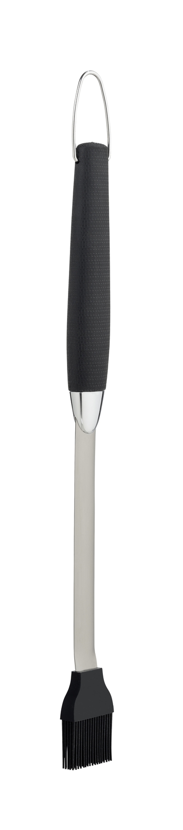 Manche ergonomique : le manche en plastique TPR noir élégant du pinceau à barbecue tient très bien dans la main. Cela vous permet d'utiliser cet accessoire de cuisine en permanence. Le crochet pratique sur le manche permet en outre de suspendre l'ustensile au chariot du barbecue ou à un crochet à proximité.