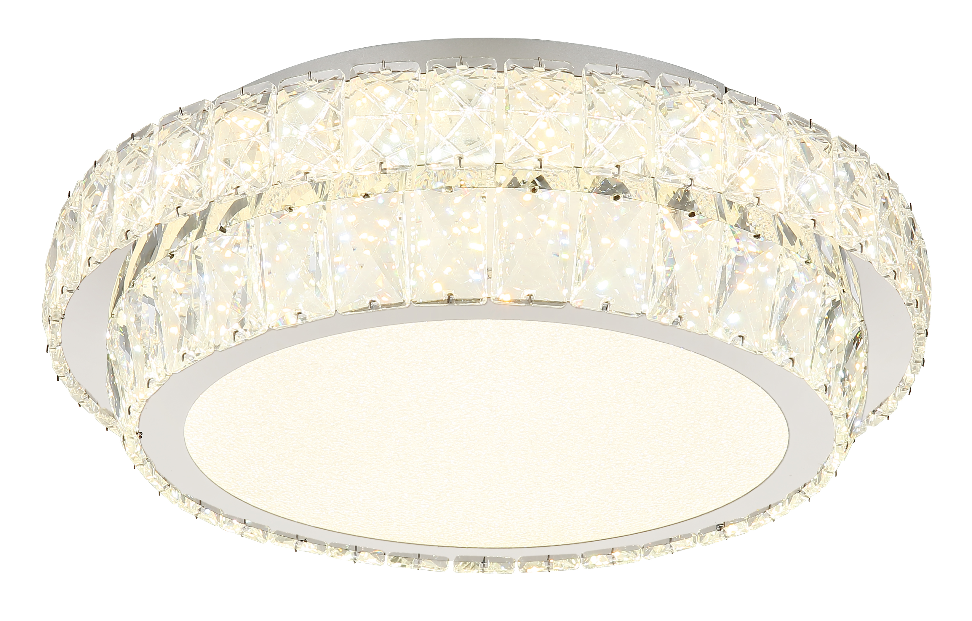Ce plafonnier rond et stylé associe design tendance et matériaux de qualité. La structure en métal chromé et les cristaux en acrylique transparent confèrent à ce luminaire un look chic et glamour.