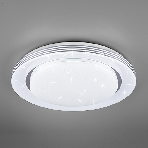 Un design simple et des fonctions pratiques ! Le plafonnier tendance ATRIA séduit par son style sobre et ses possibilités d'utilisation variées. Afin de créer une ambiance lumineuse individuelle, la température de couleur et l'intensité lumineuse du luminaire peuvent être réglées très facilement à l'aide de la télécommande. Le plafonnier positionné à la bonne place attirera tous les regards dans votre pièce grâce à la surface originale effet ciel étoilé. Grâce au design sobre ton blanc, le plafonnier s'intègre facilement dans des aménagements intérieurs existants et se combine à merveille avec d'autres coloris. La lampe dispose, en outre, de la technologie LED qui se caractérise par une luminosité de qualité et une excellente efficacité énergétique. Ceci permet d'économiser 80 % des coûts énergétiques par rapport aux ampoules halogènes habituelles. De plus, les sources lumineuses LED ont une durée de vie accrue, produisent moins de chaleur et participent à la protection de l'environnement.