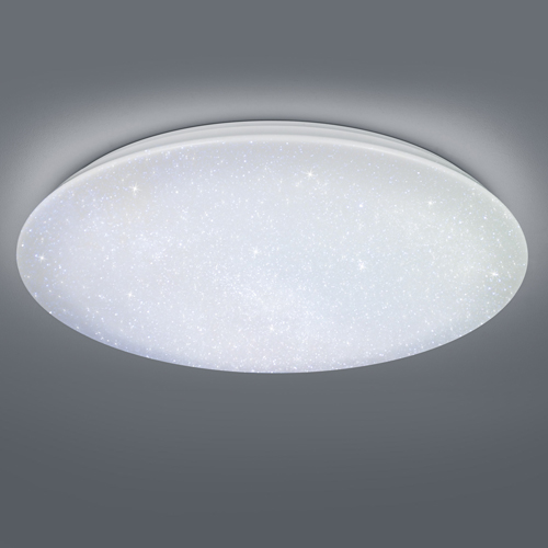 Moderne et fonctionnel : le plafonnier LED NAGANO s'intègre parfaitement dans les intérieurs modernes grâce à son design sobre. La lampe ronde avec une surface tendance effet ciel étoilé est ultra polyvalente puisqu'elle permet de créer la luminosité souhaitée selon l'ambiance de la pièce. L'intensité lumineuse du luminaire NAGANO est réglable à l'aide de la télécommande et la température de couleur peut varier en continu entre 3000 et 5500 Kelvin afin de créer l'ambiance lumineuse souhaitée. De plus, le plafonnier dispose d'une fonction veilleuse pouvant également être actionnée via la télécommande. Grâce à la fonction mémoire intégrée, le dernier réglage de la luminosité est enregistré dans la télécommande et réactivé dès que la lampe est éteinte et rallumée à l'aide de l'interrupteur mural. Les ampoules LED intégrées disposent d'une puissance lumineuse de 6400 Lumen pour une puissance de 80 Watts. La lampe NAGANO a un diamètre de 79 cm et une hauteur de 10,8 cm. La lampe dispose, en outre, de la technologie LED qui se caractérise par une luminosité de qualité et une excellente efficacité énergétique. Ceci permet d'économiser 80 % des coûts énergétiques par rapport aux ampoules halogènes habituelles. De plus, les sources lumineuses LED ont une durée de vie accrue, produisent moins de chaleur et participent à la protection de l'environnement.