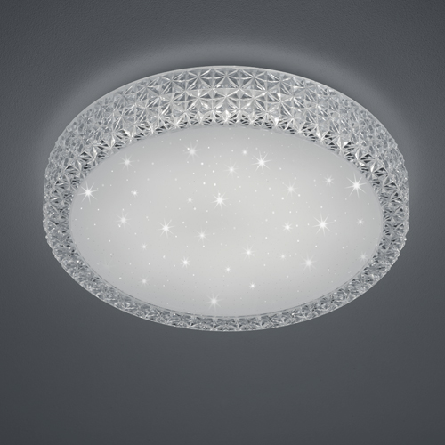 Le plafonnier PEGASUS garantit un bon éclairage uniforme de votre pièce. Grâce à l'effet pailleté au niveau de l'abat-jour, le plafonnier Pegasus répand une lumière d'un charme irrésistible. De plus, la lampe dispose d'un variateur SWITCH intégré. Ce variateur permet de régler l'intensité lumineuse sur trois niveaux via l'interrupteur mural habituel pour augmenter le confort dans vos pièces. Le diamètre du luminaire est de 40 cm. La lampe PEGASUS en acrylique blanc est mise en valeur par son bord stylé qui lui confère beaucoup de classe et d'élégance. De petites pierres à la surface garantissent une ambiance lumineuse agréable. La lampe dispose, en outre, de la technologie LED qui se caractérise par une luminosité de qualité et une excellente efficacité énergétique. Ceci permet d'économiser 80 % des coûts énergétiques par rapport aux ampoules halogènes habituelles. De plus, les sources lumineuses LED ont une durée de vie accrue, produisent moins de chaleur et participent à la protection de l'environnement.