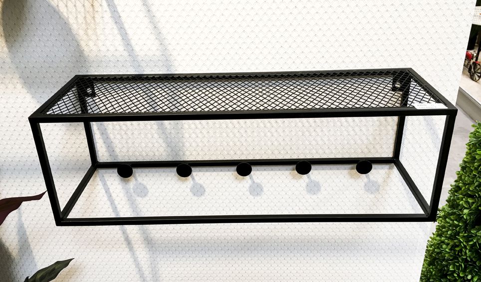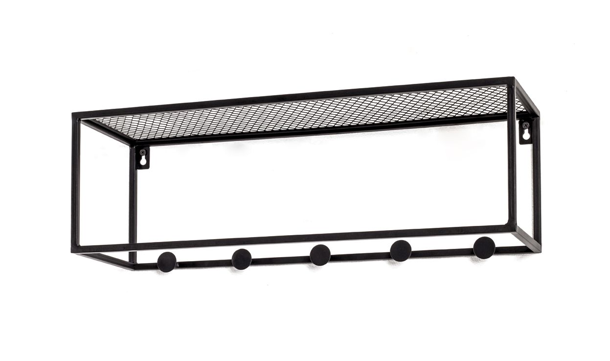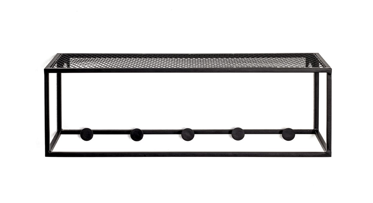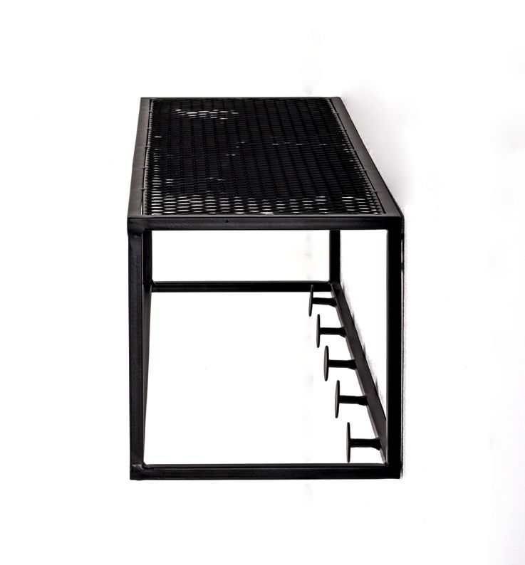 tube acier laqué ton noir avec une tablette en métal tressé laqué ton noir