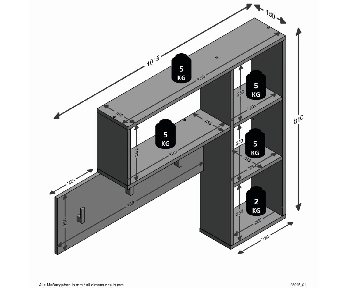 | Portemanteau mural | 103,5 | 81 | 16 |