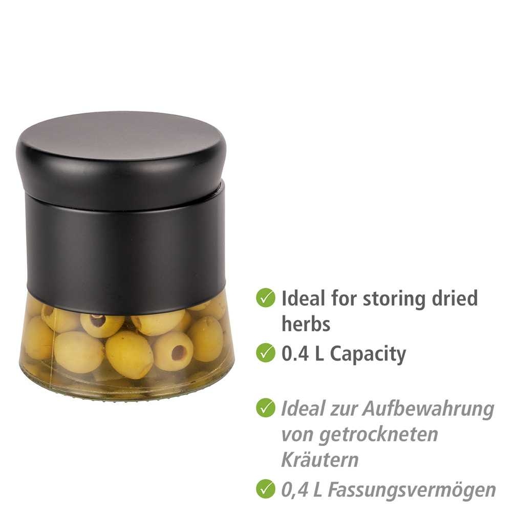 Modèle pratique : le pot à épices Boga dispose d'un couvercle en plastique et s'ouvre et se ferme à l'aide d'un bouchon à vis. Le contenu du pot est ainsi conservé en toute sécurité. Les épices trouvent une place de choix dans le pot en verre de 400 ml.
