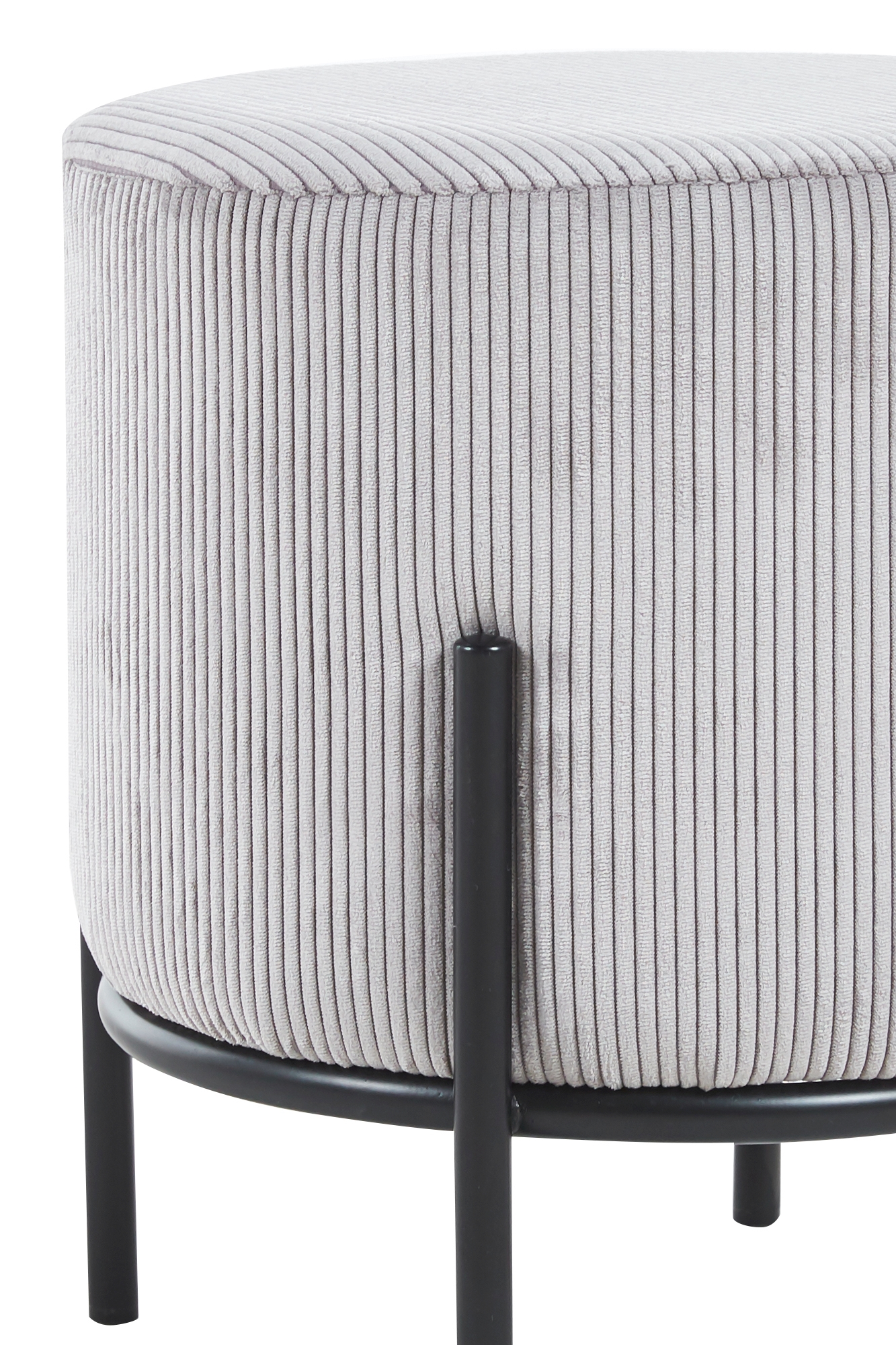 Quand des invités surprises s’annoncent, un siège supplémentaire est toujours bienvenu ! Et si, en plus, il est stylé et peu encombrant, il deviendra rapidement le compagnon design idéal pour le canapé et le coin salon. Le pouf aspect velours côtelé avec un diamètre de l’assise de 35cm offre justement cette combinaison associant aspect attrayant et côté pratique et fonctionnel. Car vous pourrez facilement y installer vos invités supplémentaires ou l’utiliser en guise de repose-pied. Le velours côtelé souple confère à ce pouf rembourré un aspect moderne et un look intéressant grâce aux coutures originales. Le piètement design à pieds hauts est fabriqué en métal finition époxy ton noir et apporte la touche finale à l’ensemble.