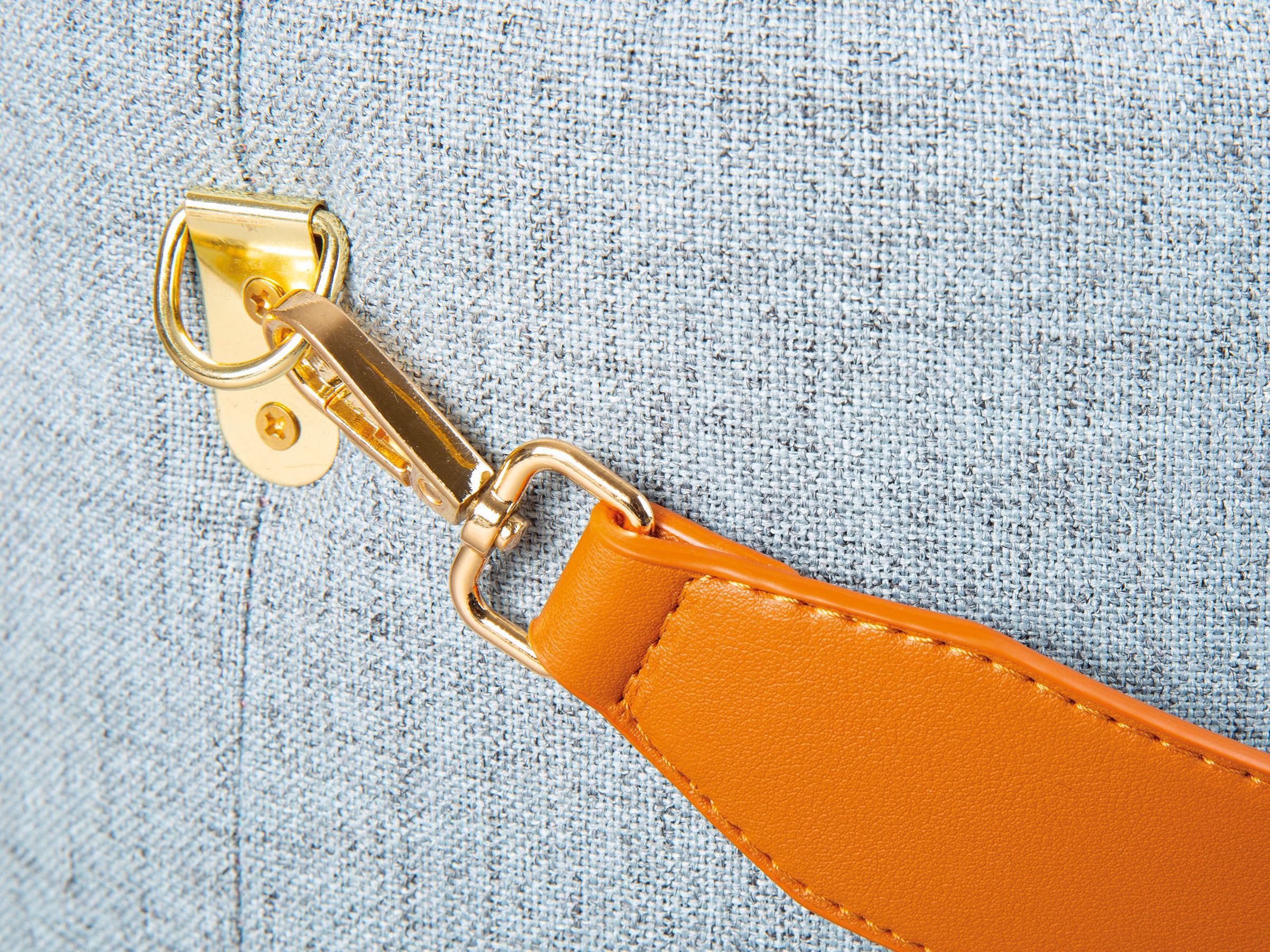 Peu encombrant et léger, le pouf se transporte facilement grâce à sa sangle marron pratique.
