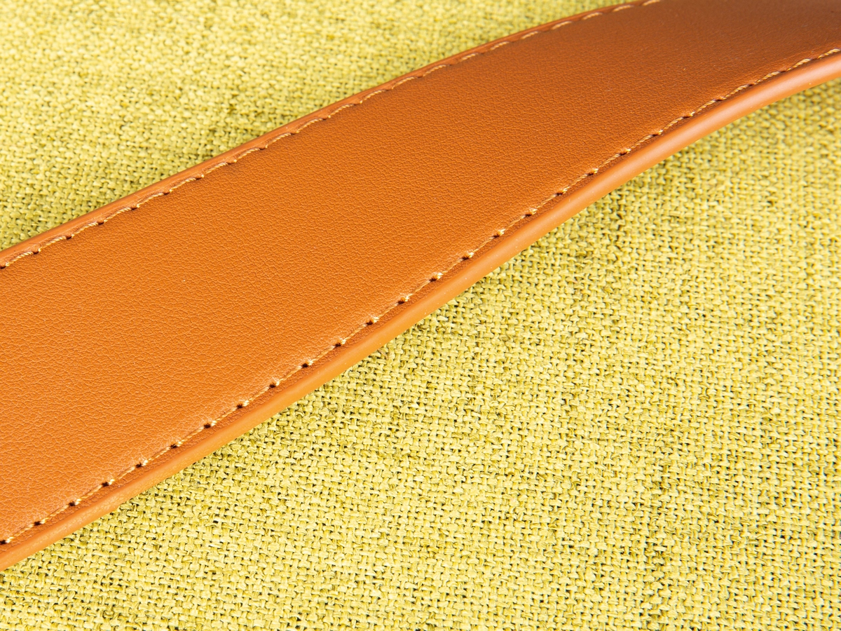 Peu encombrant et léger, le pouf se transporte facilement grâce à sa sangle marron pratique.