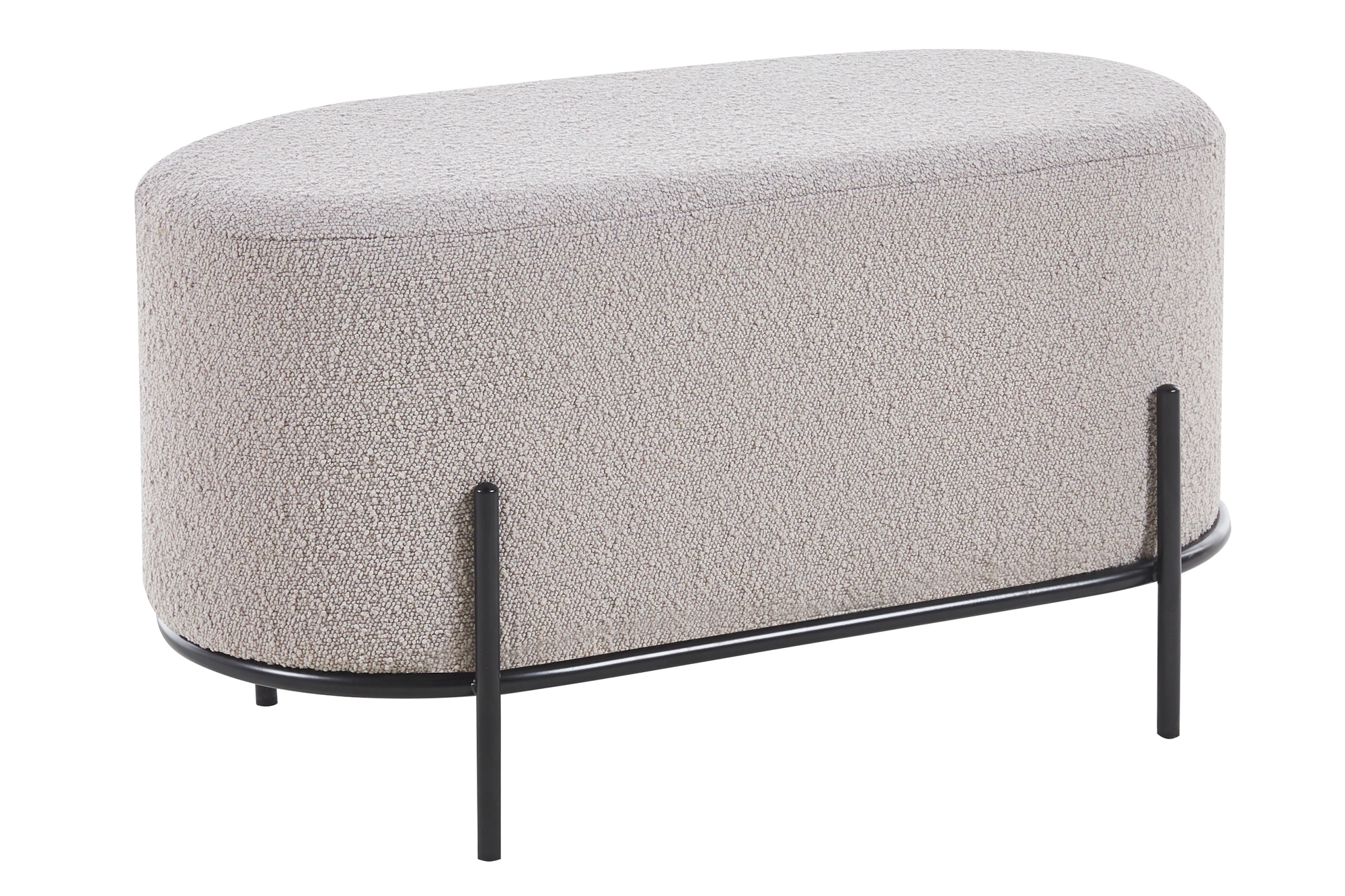 Quand des invités surprises s’annoncent, un siège supplémentaire est toujours bienvenu ! Et si, en plus, ils est stylé et peu encombrant, il deviendra rapidement le compagnon design idéal pour le canapé et le coin salon. Le pouf en tissu bouclette offre justement cette combinaison associant aspect attrayant et côté pratique et fonctionnel. Car vous pourrez facilement y installer vos invités supplémentaires ou l’utiliser en guise de repose-pied. Le tissu bouclette, qui a fait depuis longtemps son apparition dans nos salons et salles à manger, exhale chaleur et convivialité pour une ambiance cosy. De plus, le tissu, dans son aspect laineux, incarne parfaitement l’essence du style scandinave à la popularité inégalée. Le piètement design à pieds hauts est fabriqué en métal noir finition époxy et apporte la touche finale à l’ensemble. Cet article polyvalent peut également être utilisé comme banc au pied du lit.