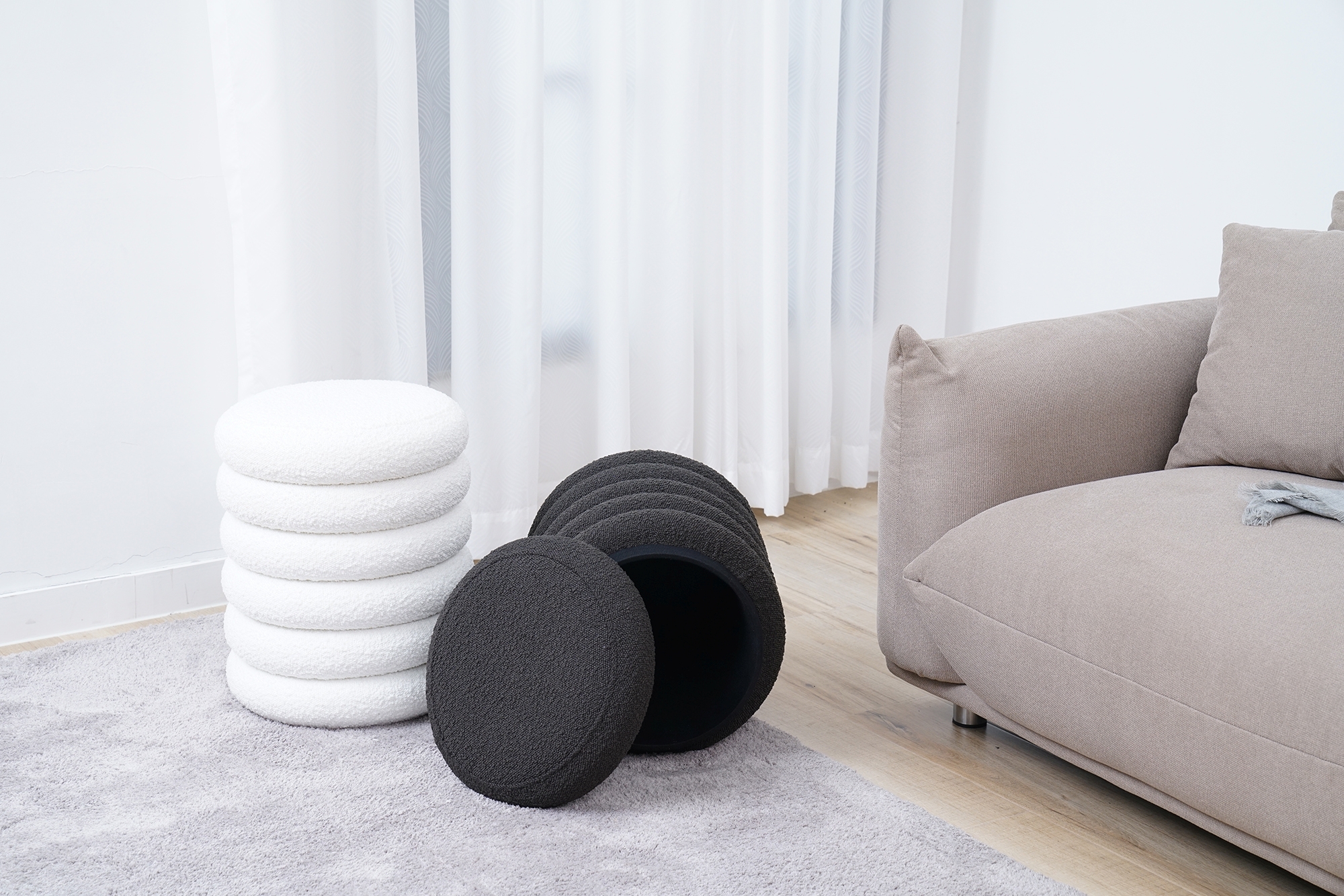 Un rangement astucieux dans un design ultra tendance ! Ce pouf en tissu bouclette moderne n’est pas seulement agréable pour les yeux. L’élément supérieur du pouf est amovible de sorte que l’intérieur se transforme en un rangement ultra pratique. Avec ce pouf, vous pourrez ainsi créer un siège supplémentaire tout en mettant de l’ordre dans le salon ou la chambre à coucher. C’est avant tout près du canapé que le pouf tissu bouclette au design années 70 sera du plus bel effet. La livraison est très facile : l’article est livré déjà monté. Il suffit de le déballer, de le placer dans la pièce et d’en profiter.