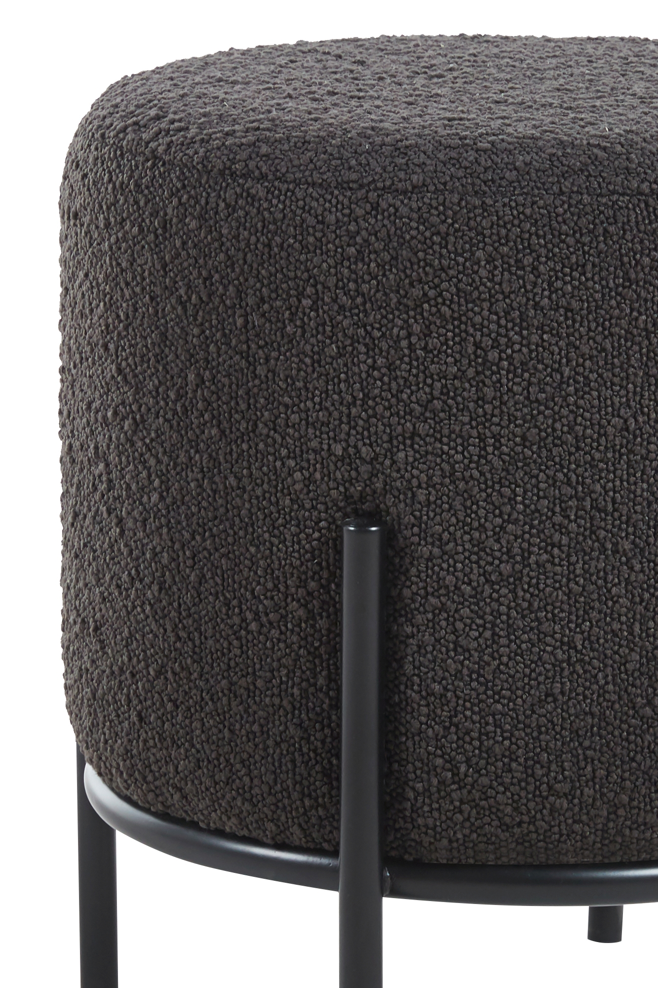 Quand des invités surprises s’annoncent, un siège supplémentaire est toujours bienvenu ! Et si, en plus, ils est stylé et peu encombrant, il deviendra rapidement le compagnon design idéal pour le canapé et le coin salon. Le pouf en tissu bouclette avec son assise d'un diamètre de 35 cm offre justement cette combinaison associant aspect attrayant et côté pratique et fonctionnel. Car vous pourrez facilement y installer vos invités supplémentaires ou l’utiliser en guise de repose-pied. Le tissu bouclette, qui a fait depuis longtemps son apparition dans nos salons et salles à manger, exhale chaleur et convivialité pour une ambiance cosy. De plus, le tissu, dans son aspect laineux, incarne parfaitement l’essence du style scandinave à la popularité inégalée. Le piètement design à pieds hauts est fabriqué en métal finition époxy ton noir et apporte la touche finale à l’ensemble.
