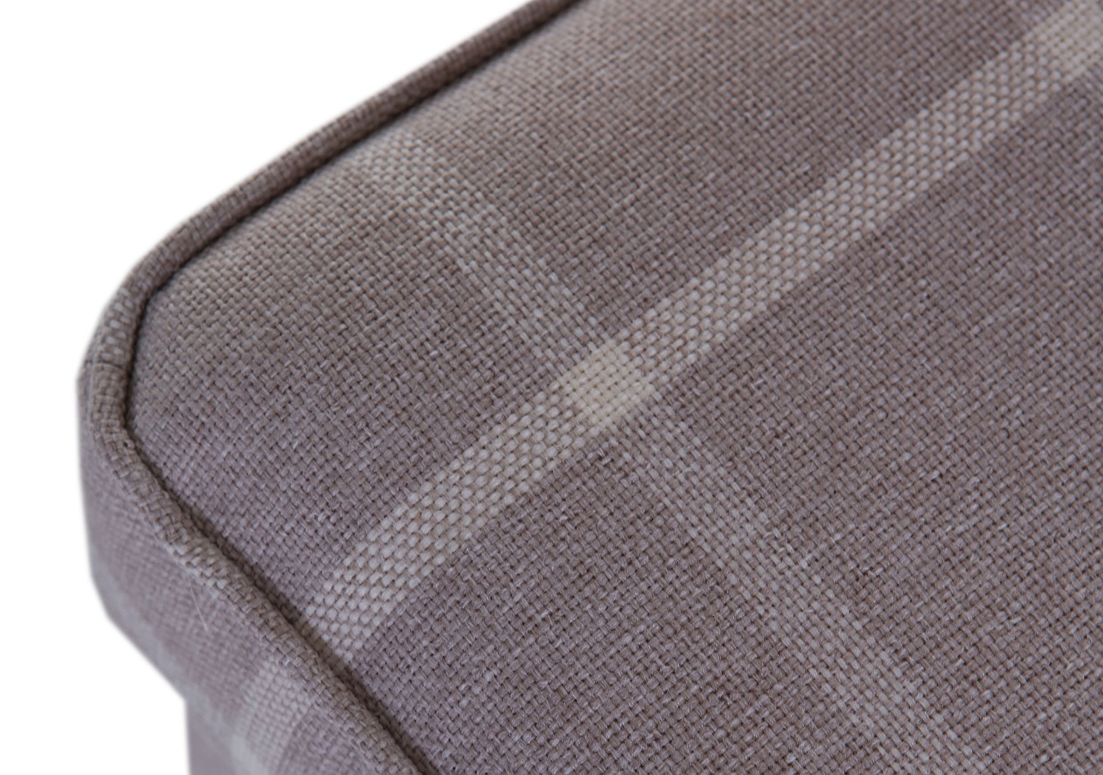 Revêtement : tissu 332/15 ton gris à carreaux (tissu de base 100% polyester ; couche d'usure 95% polyester et 5% polyamide)