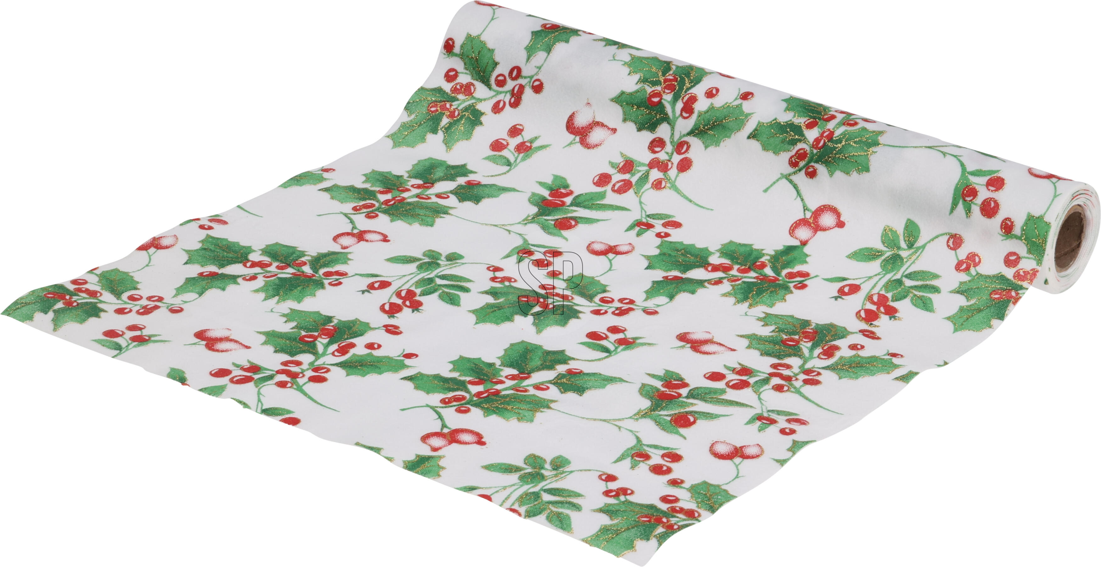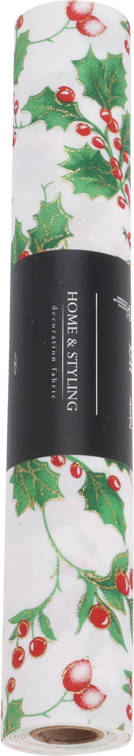 Rouleau de tissu déco motif branche avec baies CHRISTMAS