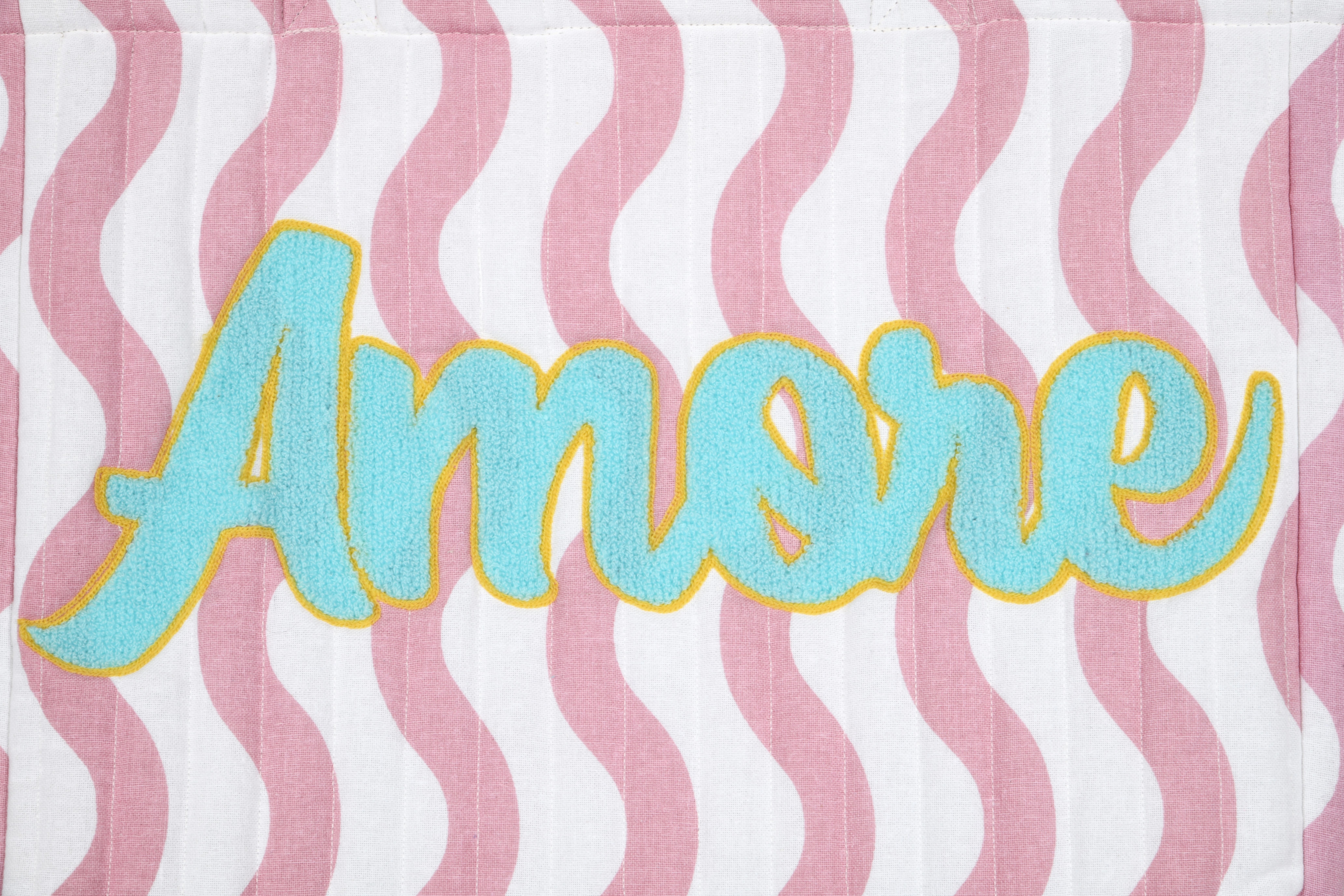 Avec inscription brodée « Amore » ton turquoise